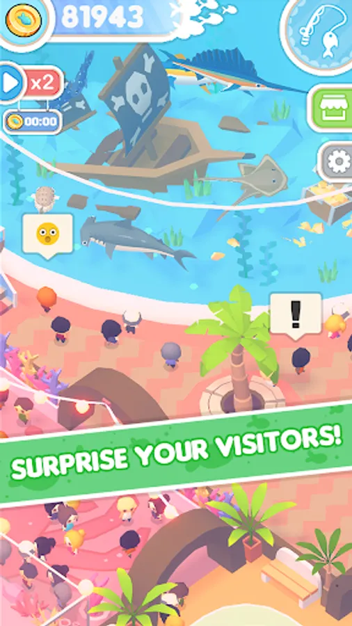 🐟 Attract as many visitors as you can by upgrading your buildings and fish tanks with the money you earn!