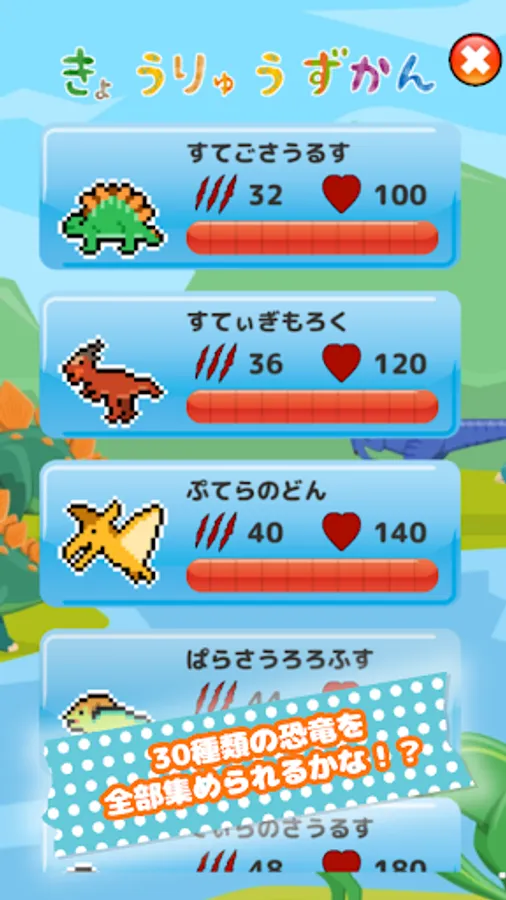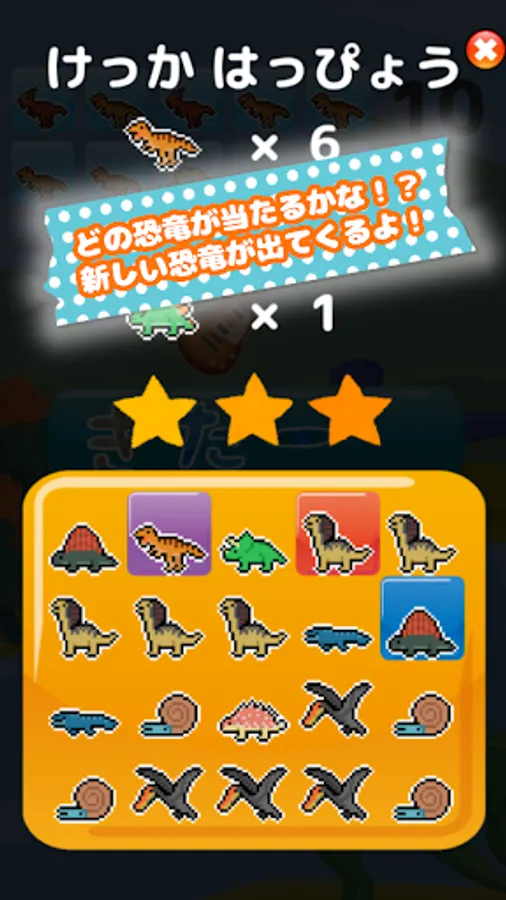 After playing, you can get a cute dot picture dinosaur and have fun filling up the picture book. (The estimated number of plays until the picture book is completed is 100 to 150 times)