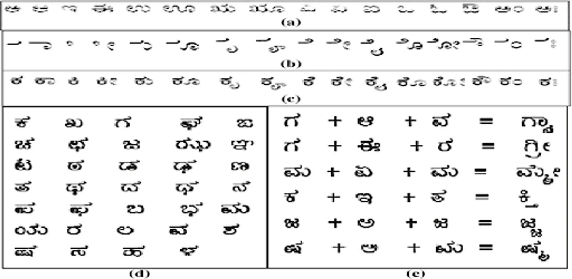 *Table to differentiate alphabets