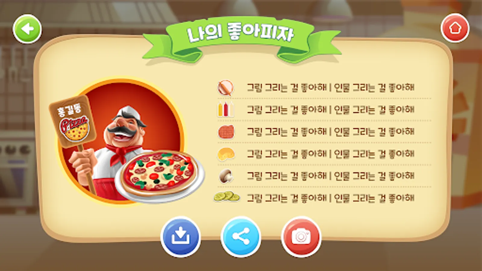 - 나의 흥미가 담긴 피자를 완성하고 함께 촬영합니다.