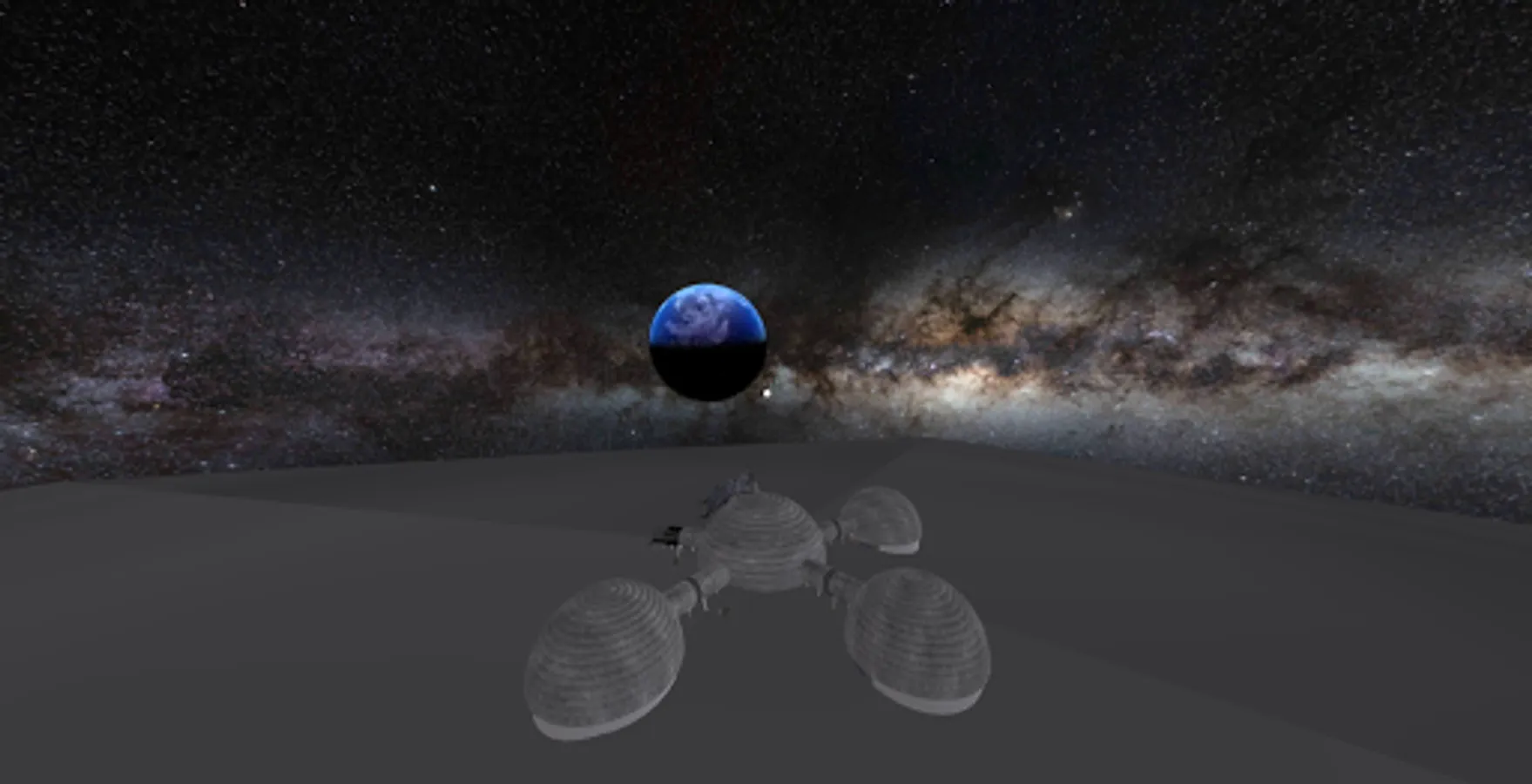 It shows a possible way a Lunar Base could be and it presents it in VR. You can look around on how it would and also the size.