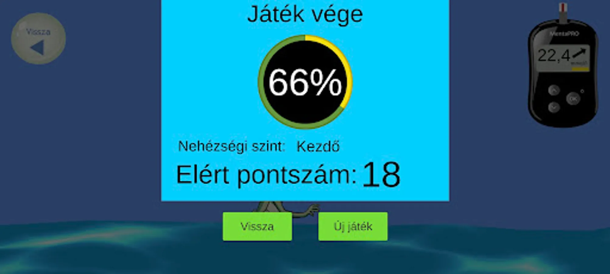 The final score is based on how long you were able to stay in the game and how long Menta's blood sugar was in the good range during that time. If you feel that you are already a real pro at the beginner level, try yourself in the advanced version as well!