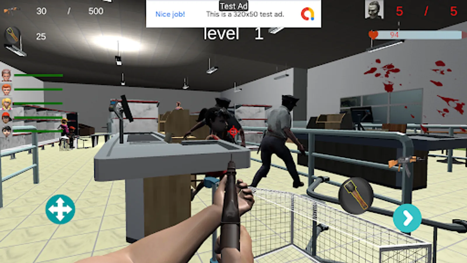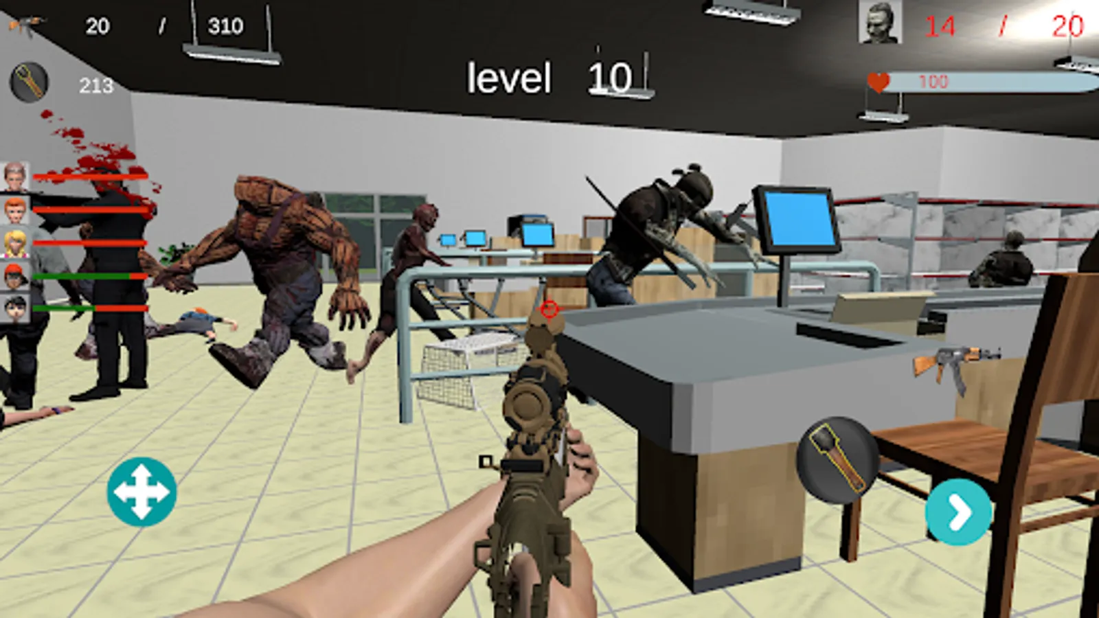Zombies suddenly attacked the supermarket!! Repel the zombie attack with your helpers. Help people safely exit the market.