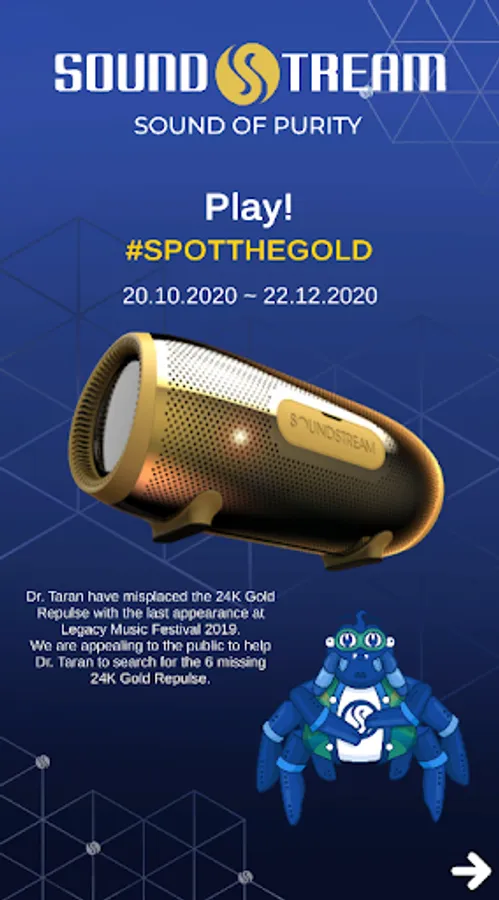 Music Lovers, there's always something new with Soundstream Play! for you to discover. You can now join in our Soundstream intelliteam to hunt for Soundstream Gold Repulse speakers. Discover the world of SS Lifestyle with the placement of our gold speakers in an AR environment. Join in our adventure and starts to discover Soundstream in a fun and interactive way.