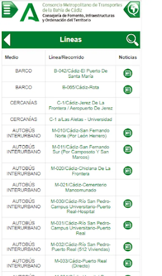 Application to have access to all the combinations and schedules of public transport in the province of Cádiz. (Cádiz city and its towns).