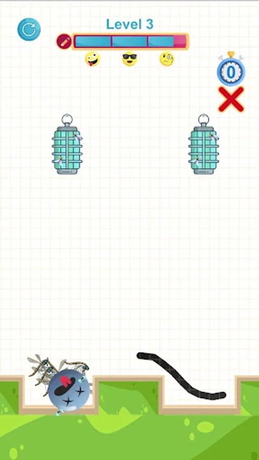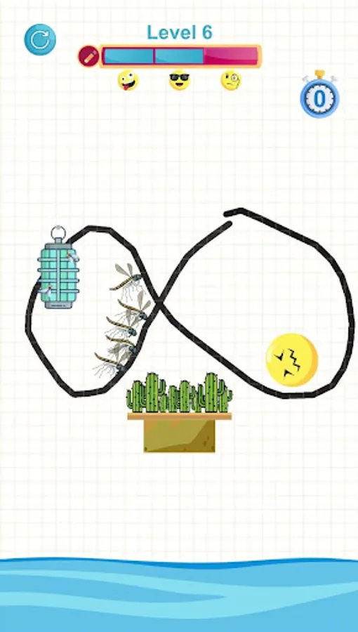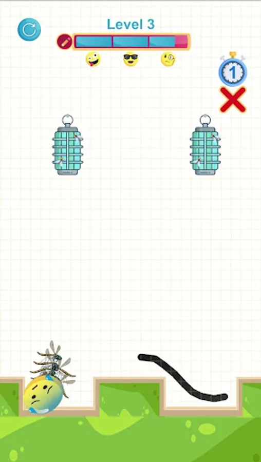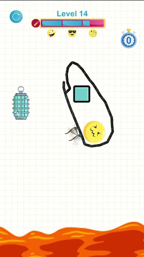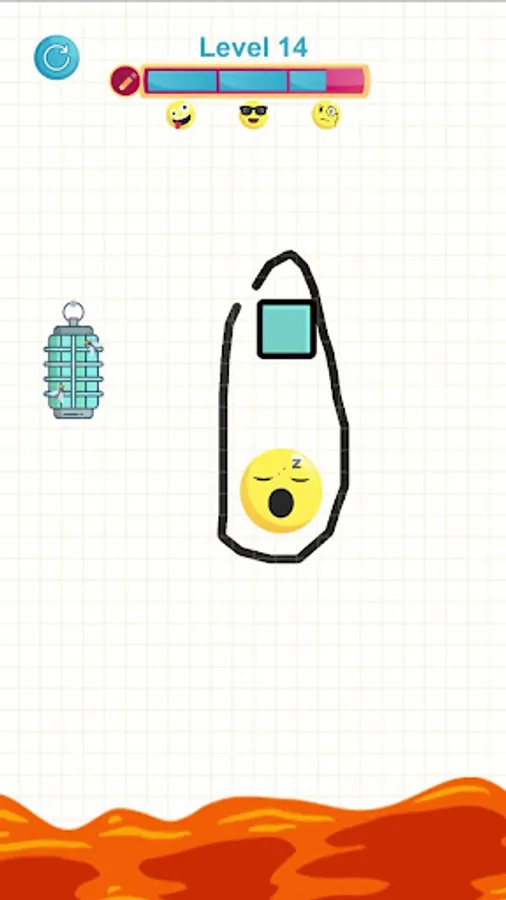 Be careful! The flies came out to wake it up. The only way to save the sleepy emoji is to draw a line to stop those flies. Flies aren't the only thing that can harm him. The sleepy emoji also must overcome lava, water, spikes and acids to reach safety. Help him please!