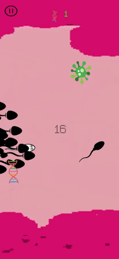 Ekrana tıklayarak spermini hareket ettir, düşman spermleri alt ve üst duvarlara çarparak etkisiz bırak! Yoldayken virüslerle temastan kaçın, DNA canlarını topla. 999 skora ulaşabilecek misin?