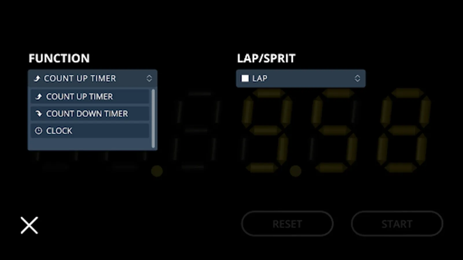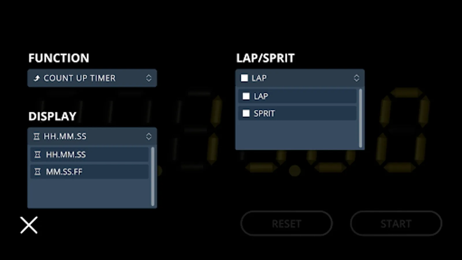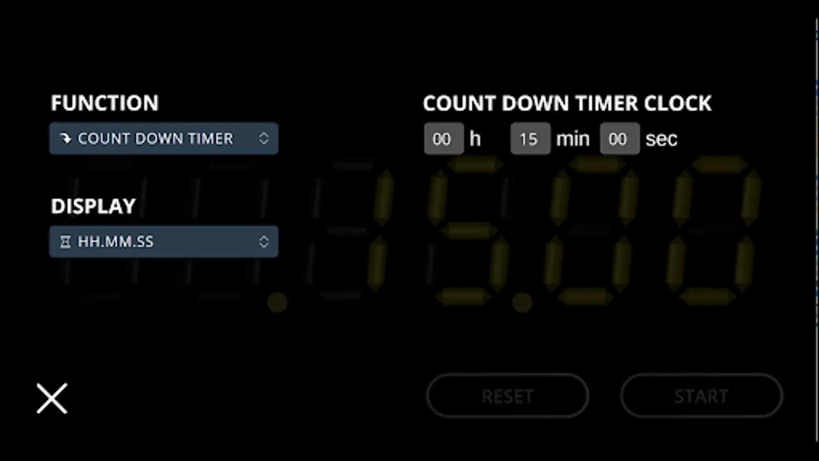 To specify the time, tap the settings icon at the bottom left, select the countdown timer from the feature drop-down menu, tap the input field below labeled Countdown Timer Clock, and enter a number from the virtual keyboard. please. Click the x button at the bottom left to finish the setting, and press the start button to start the countdown.