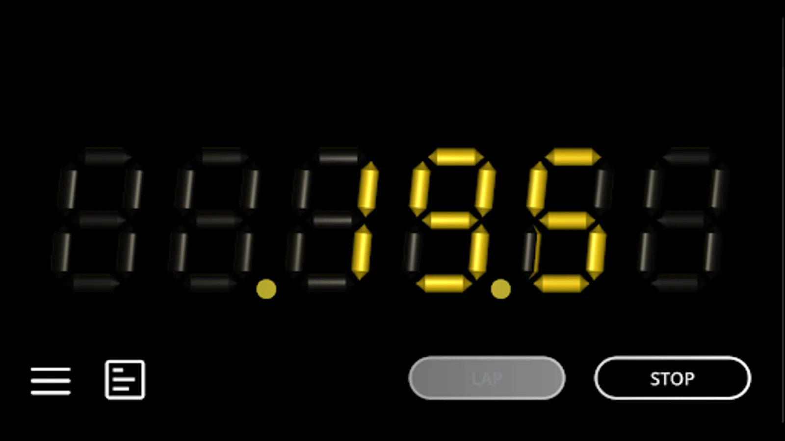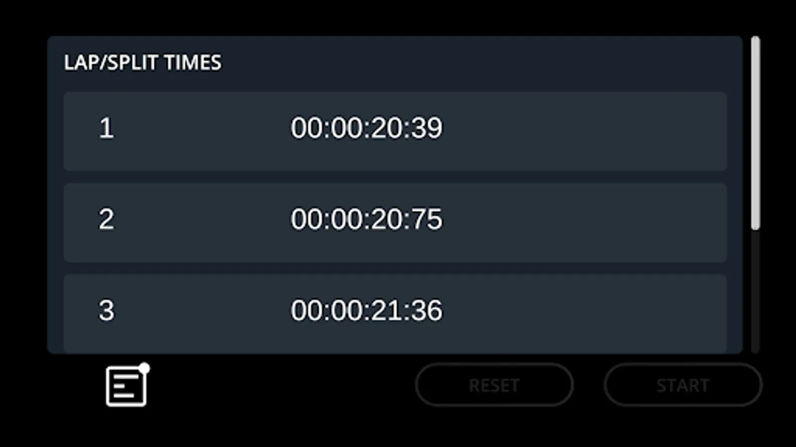 If you press the lap or split button during measurement, the lap or split time will be memorized. You can check the memorized time list by tapping the list icon at the bottom left. Whether to measure lap or split can be set from the setting icon at the bottom left.