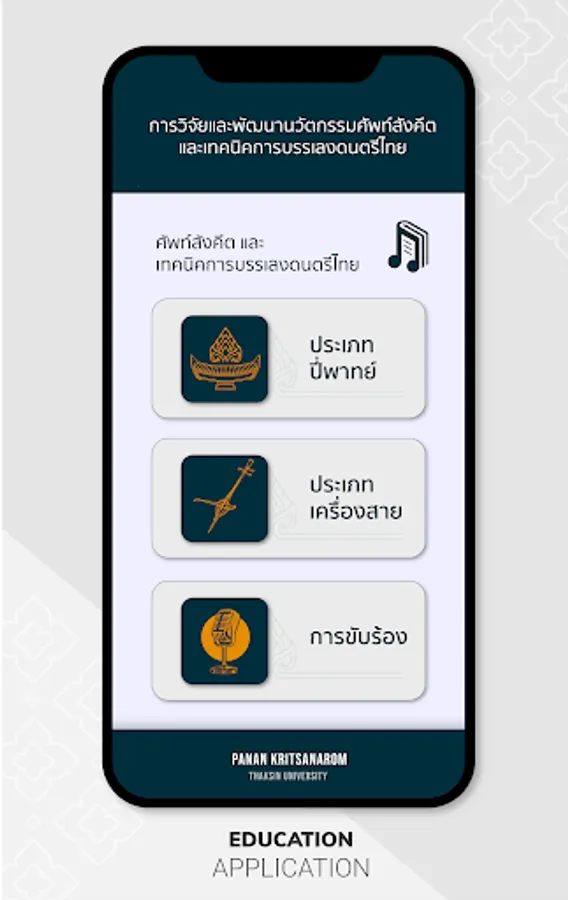 Benefits: It can meet the needs of musicians with low skills or youth who want to learn music by themselves conveniently and quickly, as well as creating sustainable wisdom in Thai music culture.
