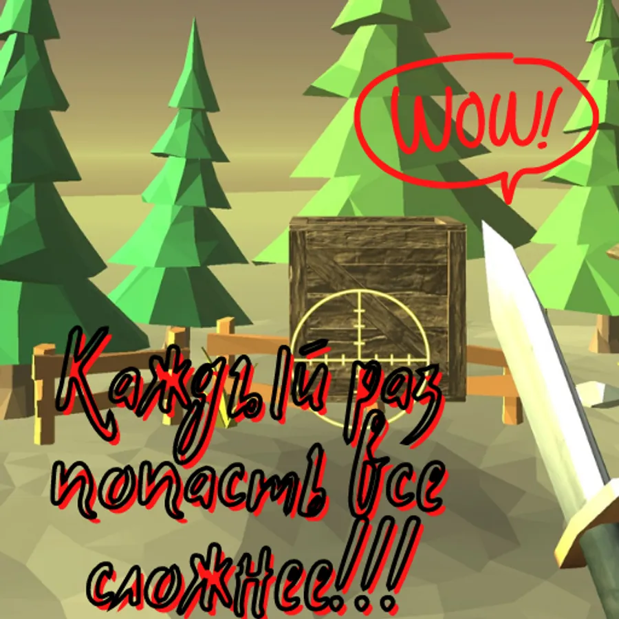 No more throwing knives in real life! Now you have a unique game that repeats the real process of knife throwing in terms of difficulty. You will be provided with a professional hunting knife to hit targets, but it's not that simple! The targets will always be in different places, the scope is constantly moving, so don't try to make hasty decisions! This game is a real test of accuracy and coordination.