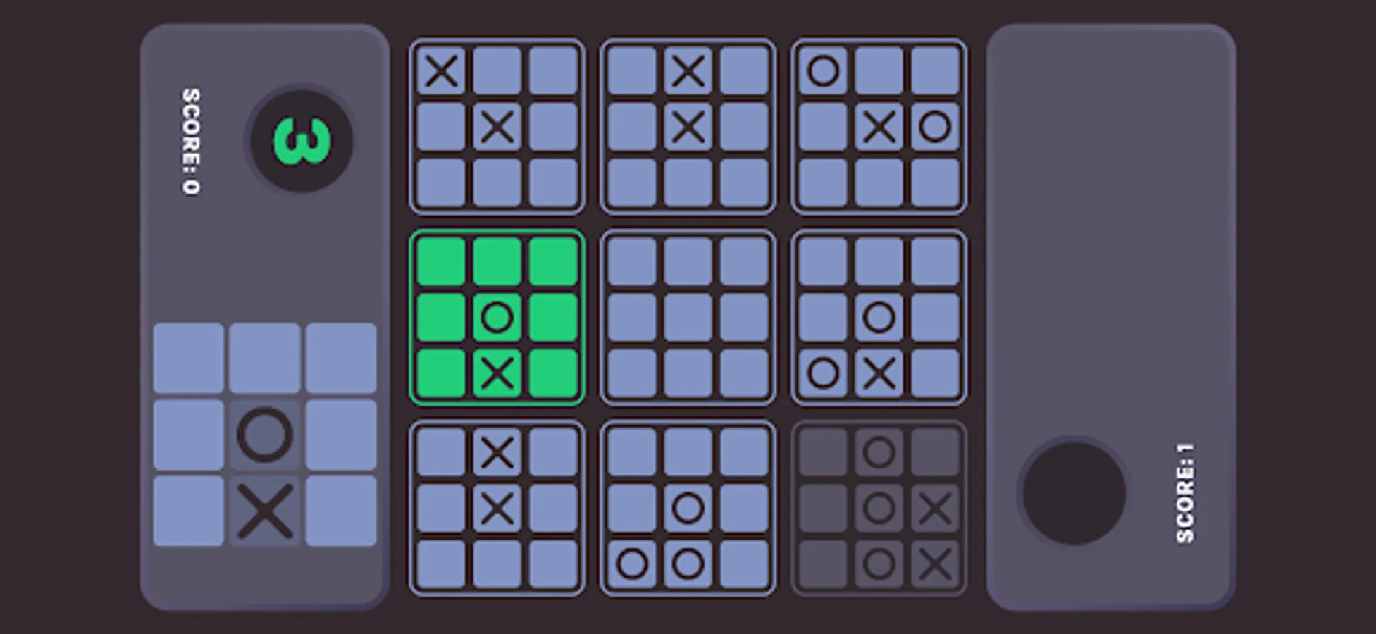 Tic Tac Toe - Swap features a unique board with nine 3x3 tic tac toe fields that are each filled individually. In this version, players take turns like in the original, but with each new turn, a new field is randomly picked. This exciting mechanic adds a level of surprise and strategy that will keep you and your friend or family entertained for hours.