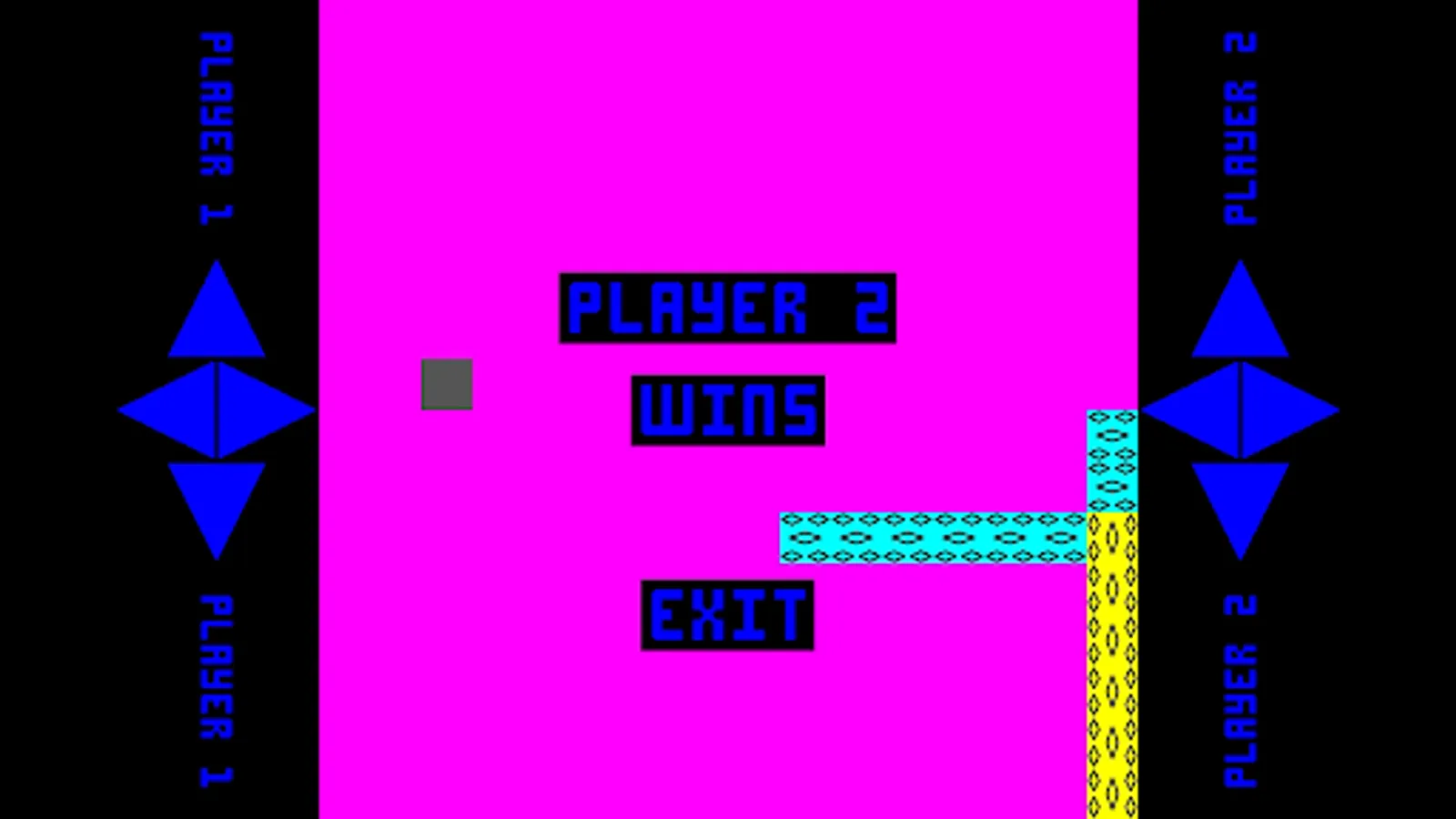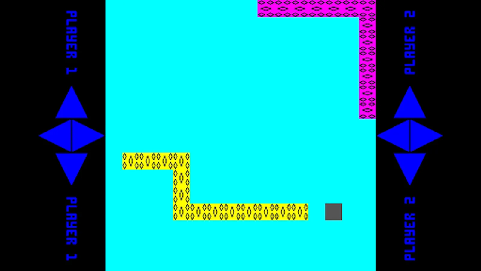 Race to eat the fruit to grow your serpent, then corner your opponent to win.