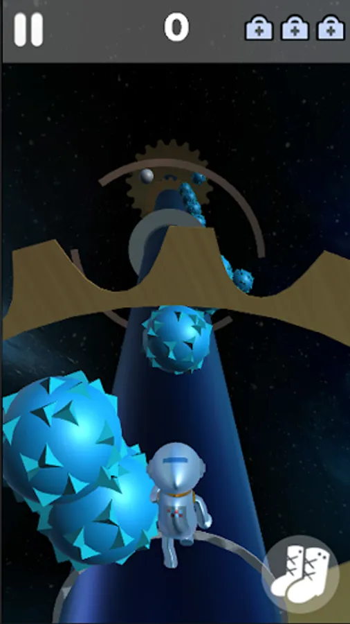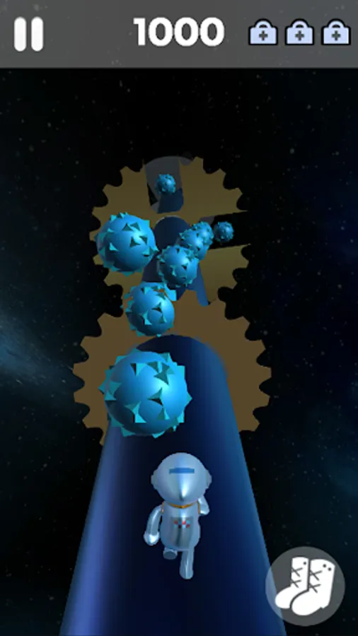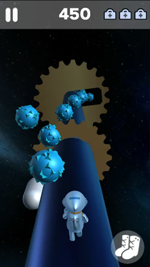봉을 회전하여 장애물을 피하며 점수를 획득하는 우주 배경 3d 런 게임