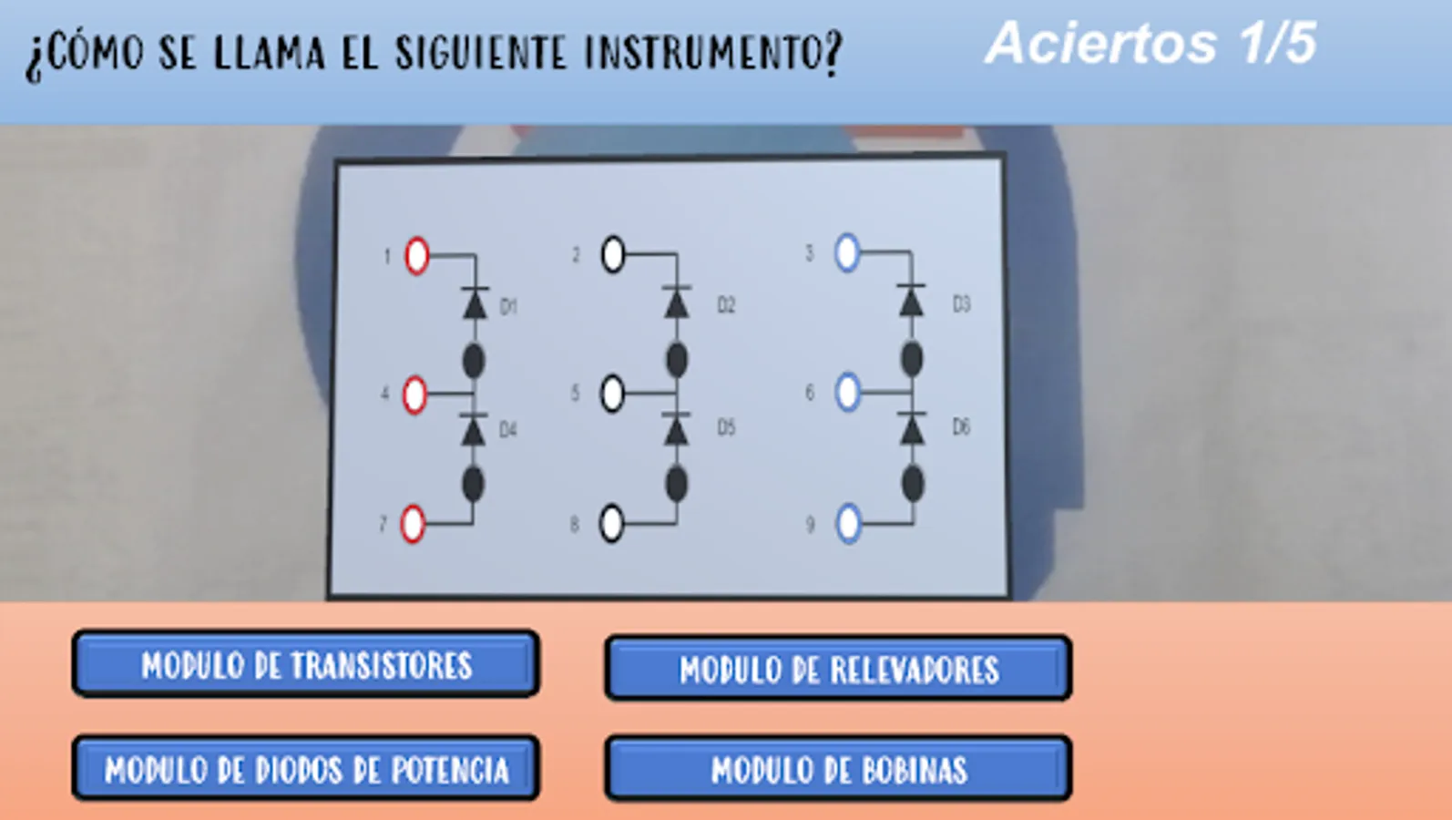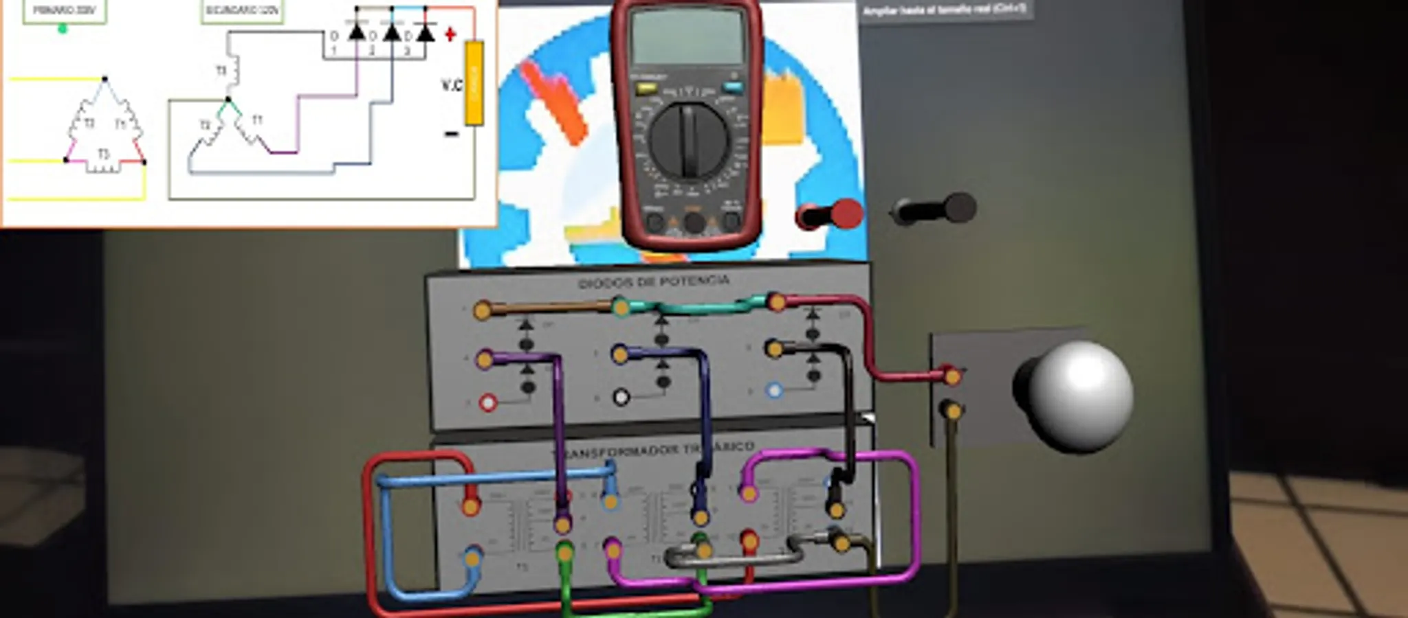 Virtual laboratory-type tool that uses augmented reality in order for them to learn and strengthen power electronics topics, such as half-wave rectifiers, with interactive activities which will be evaluated.