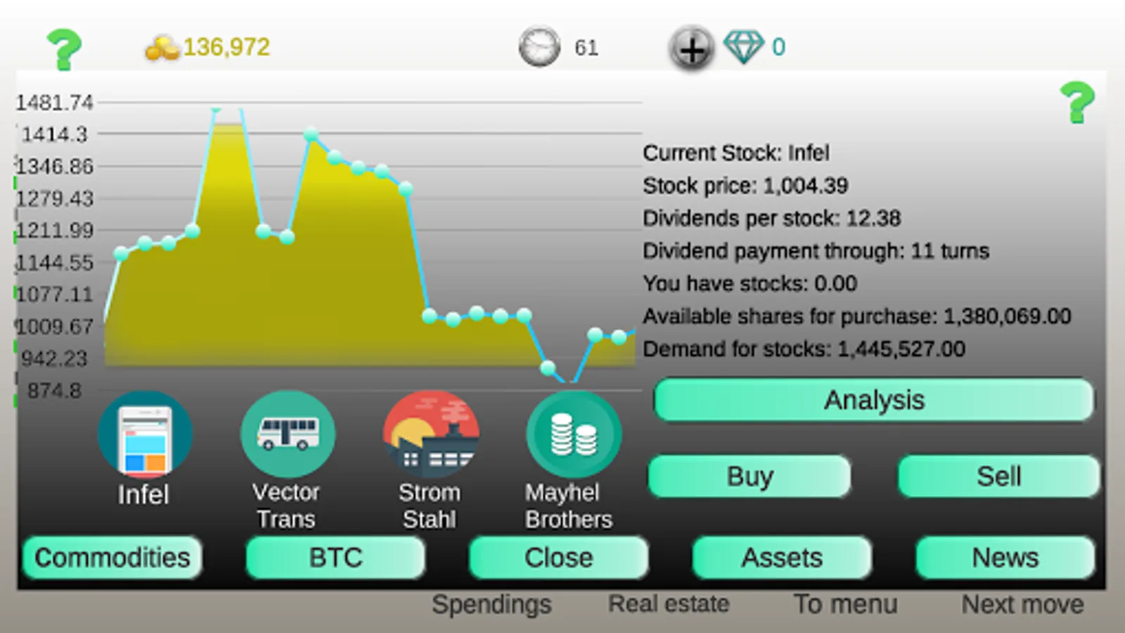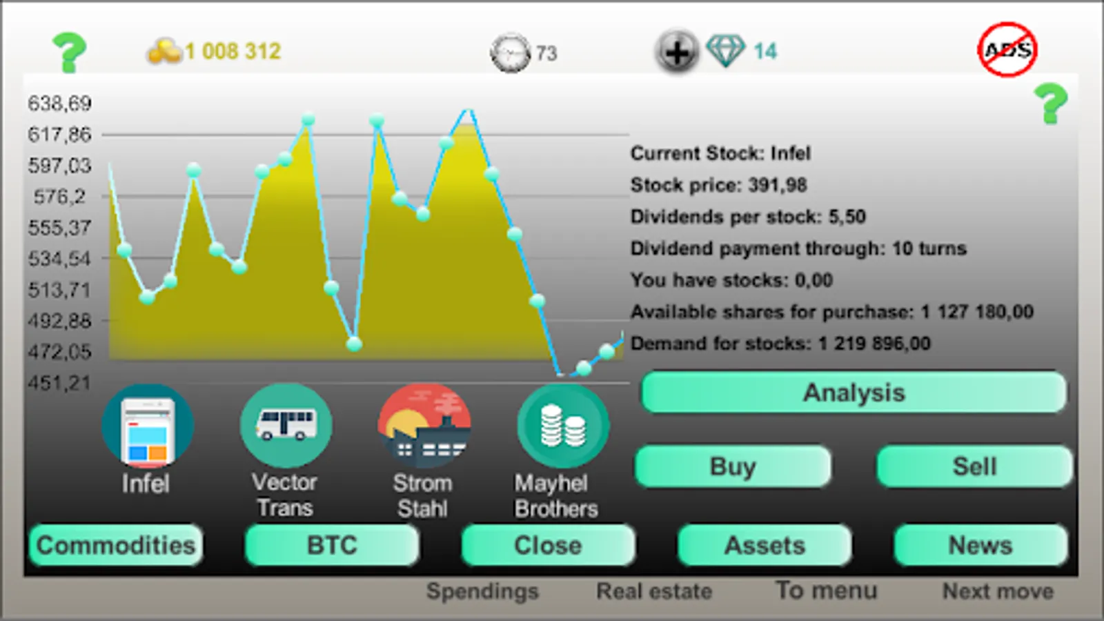 Business strategy 2 is a turn-based strategy, an easy exchange simulator that will allow you to plunge into the business world. This simple and exciting economic strategy will allow you to trade in stocks and commodities, open your business - everything to achieve your goals. Manage your time, develop your skills, invest in various sectors of the economy.