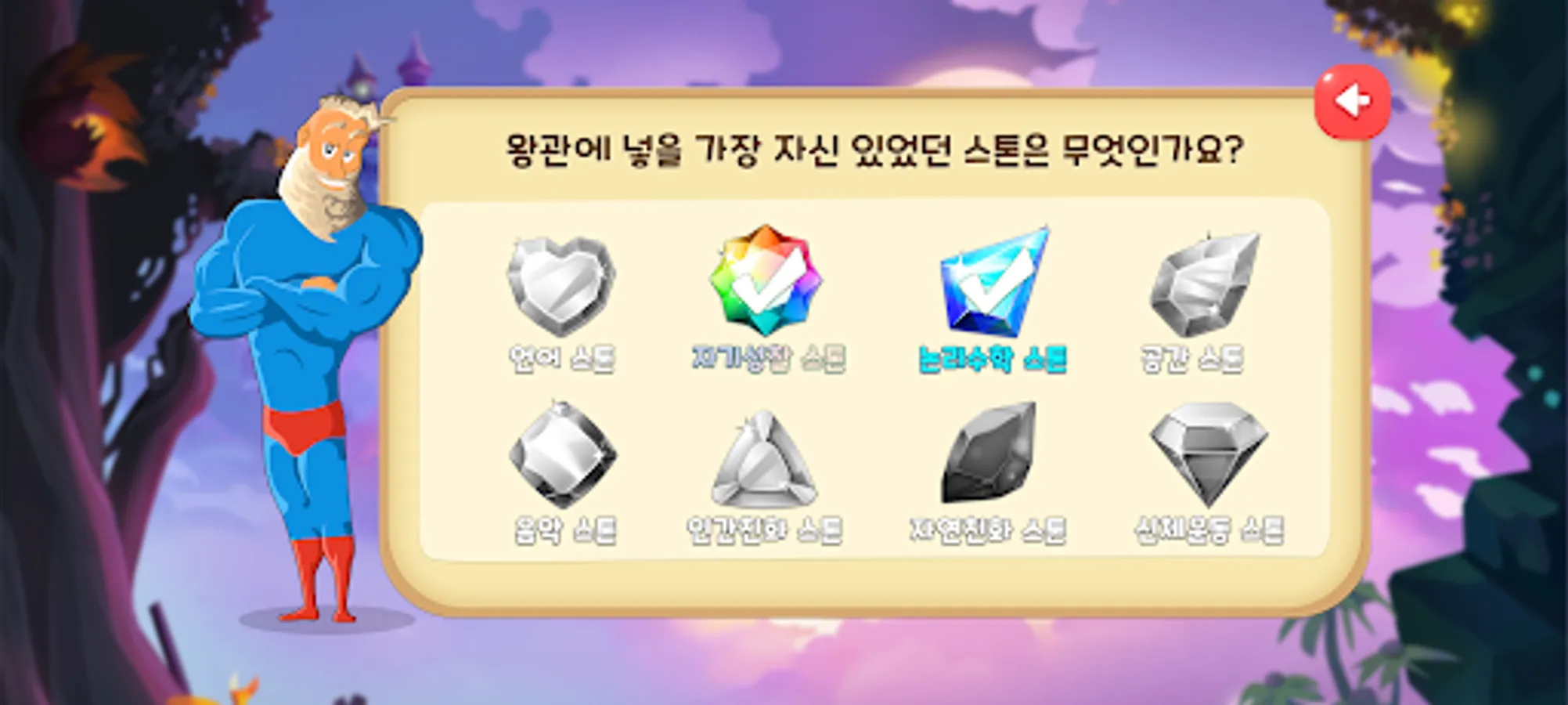 - 퀴즈를 통해 모은 8가지 매직스톤의 의미에 대해 살펴보고, 질문에 따라 스톤 4개를 최종 선정합니다.