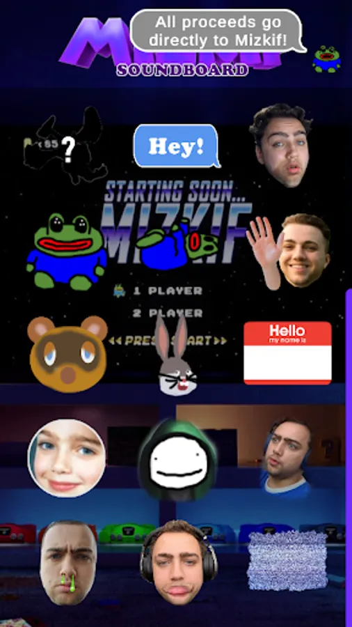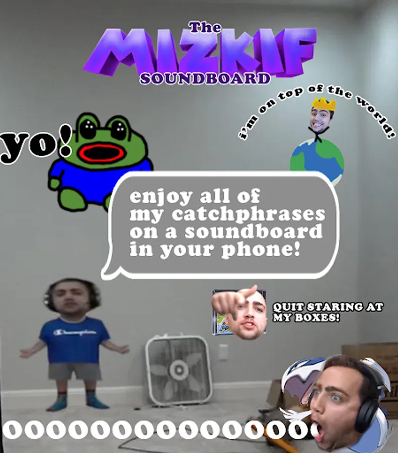 Mizkif shouts all his catchphrases when you press a button. Each button has a different recognizable sound from Mizkif and friends