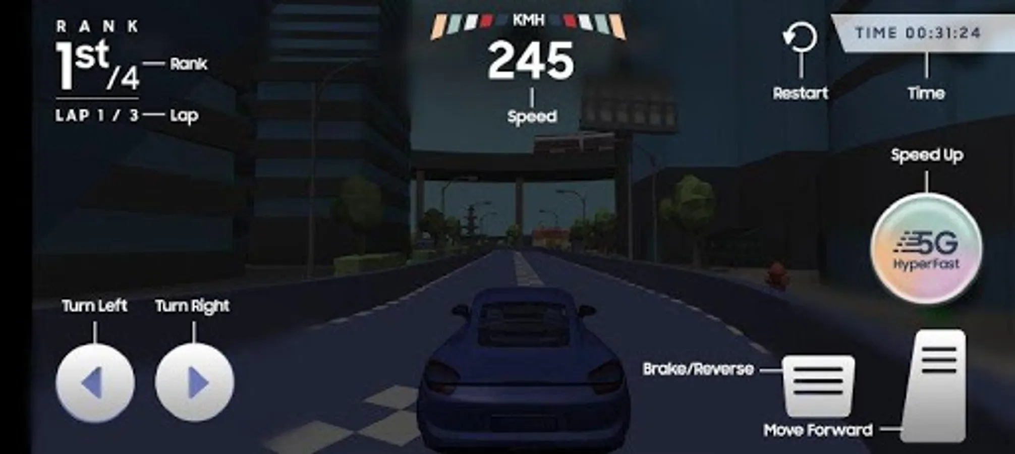 Before you start your race, build the ultimate race car by exploring the city and collecting as many points as you can.
