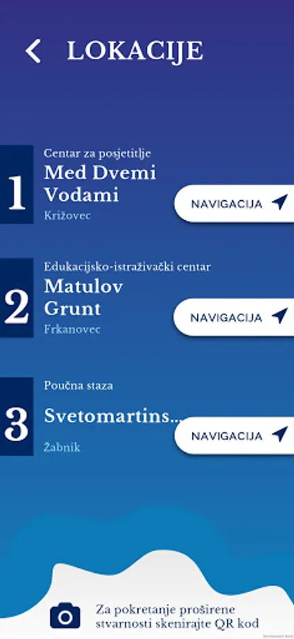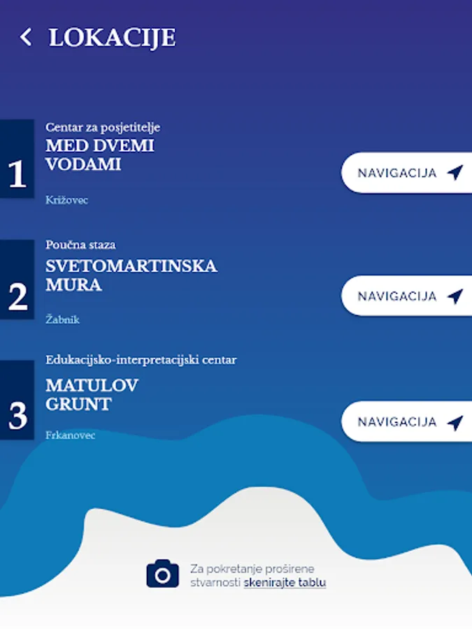 The application is an interactive guide offered by the Med dvemi vodami Visitor Center, which complements the existing educational content at three locations that interpret the nature of Međimurje. Locations are: