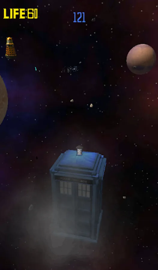 Fly the Tardis through an asteroid field, dodging the Daleks deathly lasers, you have to survive against some of the Doctor´s enemies and his weapons while you find some of the lost Doctor´s belongings in this amazing 3D adventure based on the BBC show Doctor Who.