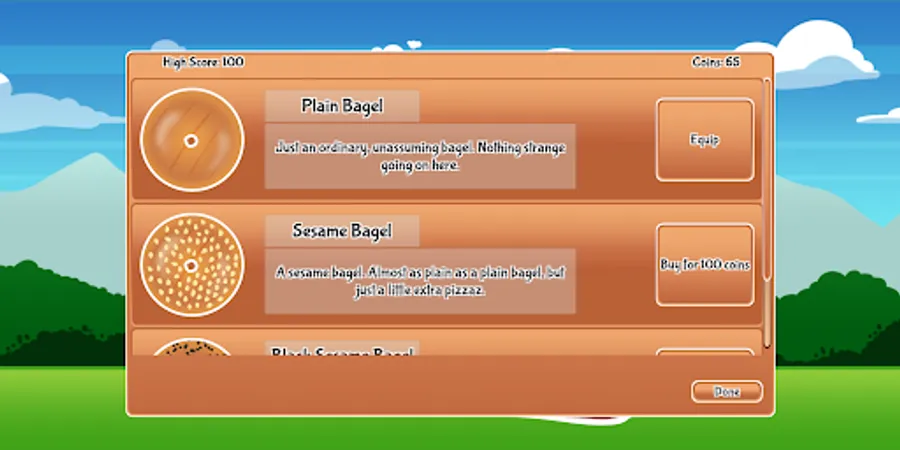In Rolling Bagel, you play as a bagel who is rolling. Your goal is to avoid the bugs and roll as far as you can. When you finish each round you get coins that will let you unlock new types of bagels.