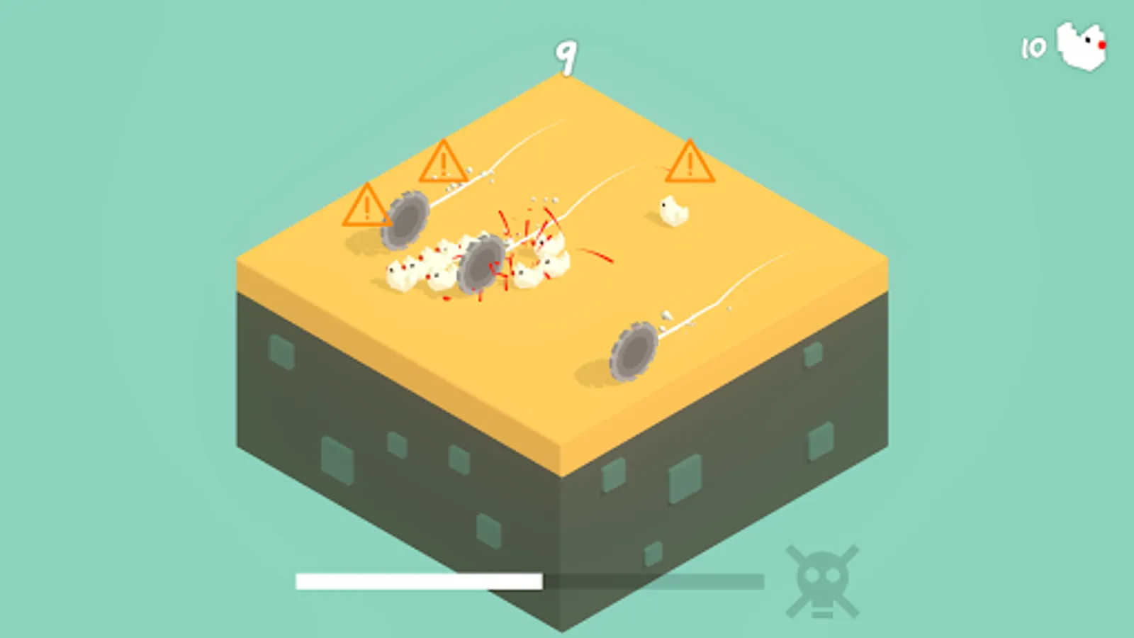 Keep the chickens moving and avoid the falling blades for as long as you can.