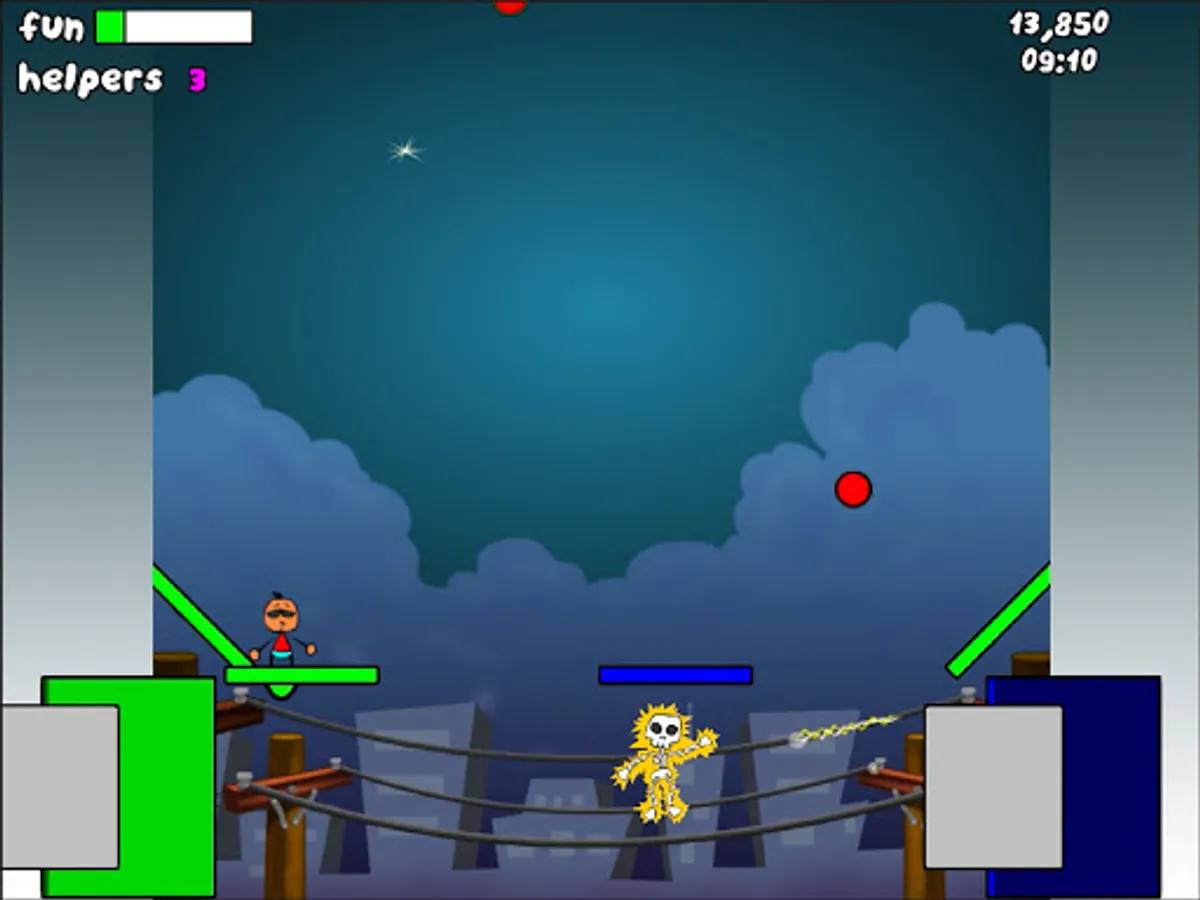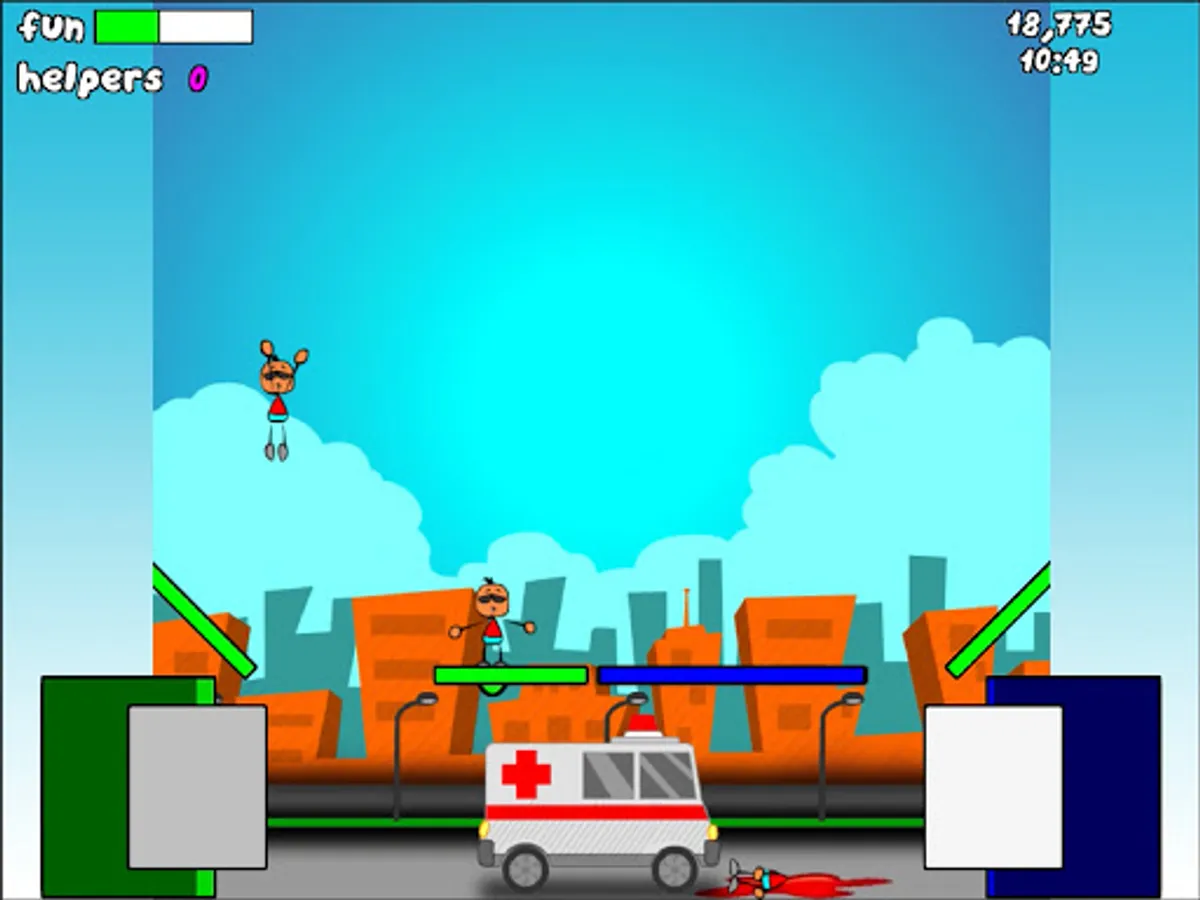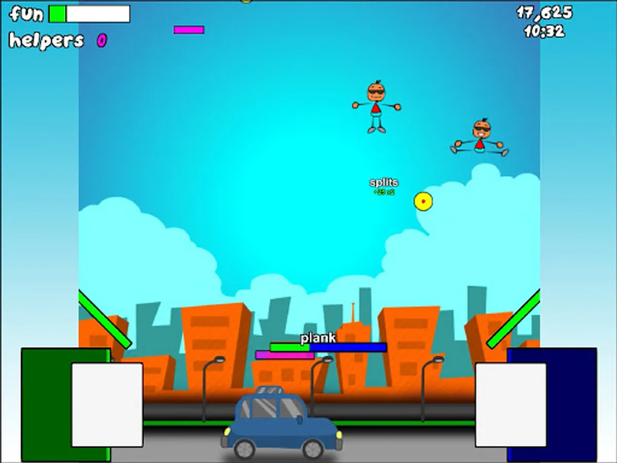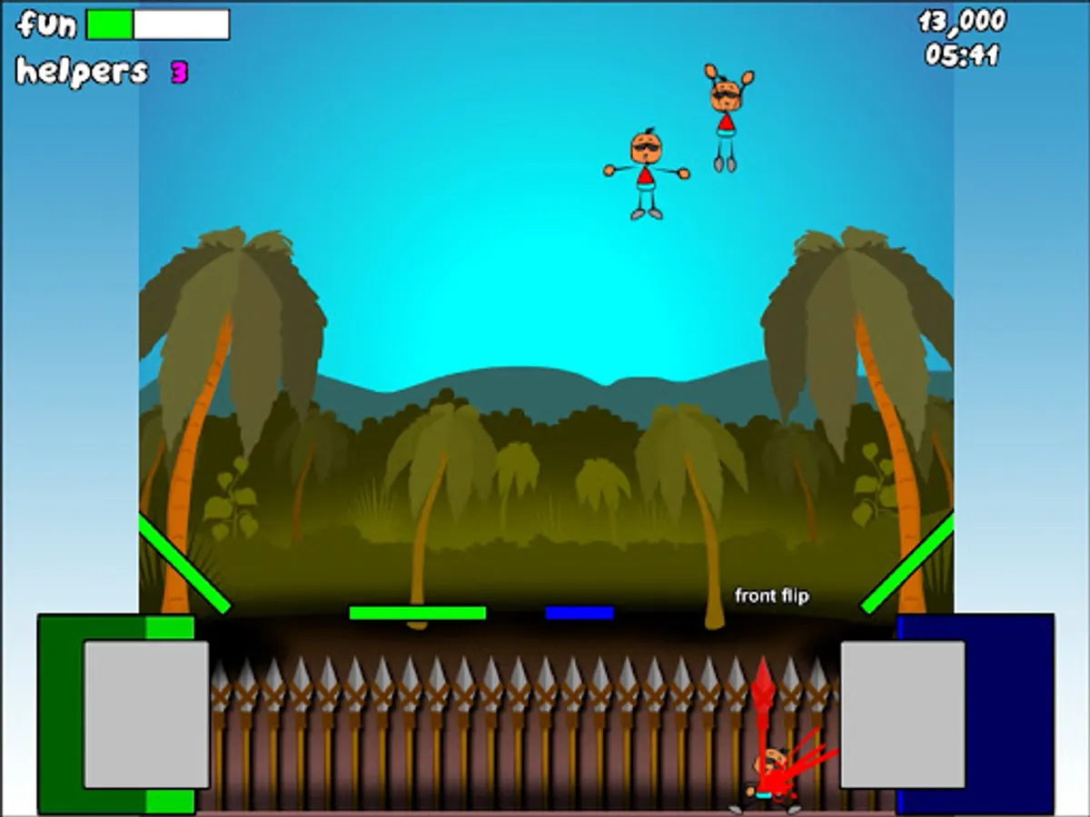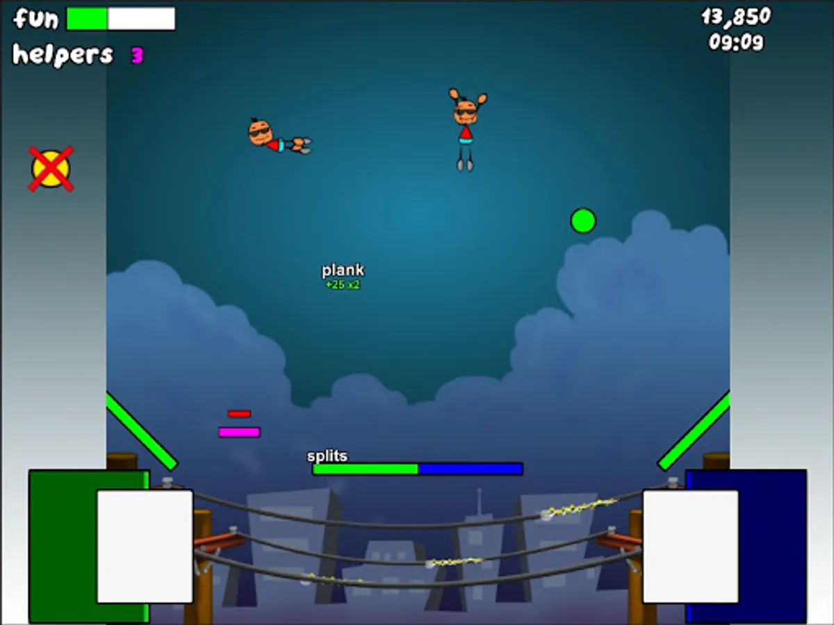 Concentrate hard on moving those trampolines to keep your friends from suffering a horrible fate, all while pulling off mega cool tricks! The tricks get cooler as the fun meter goes up, so don't let anything bad happen (that would be a total bummer!)