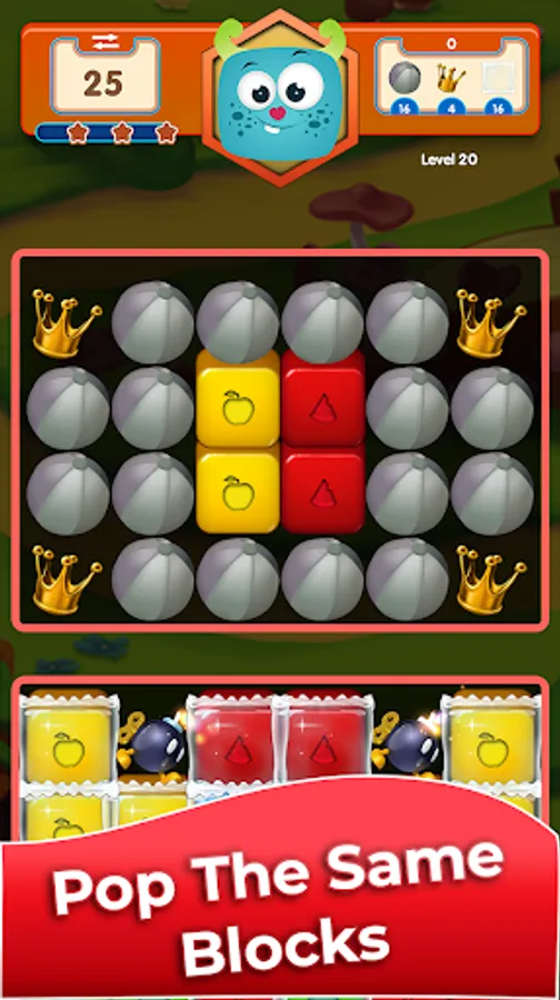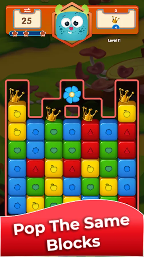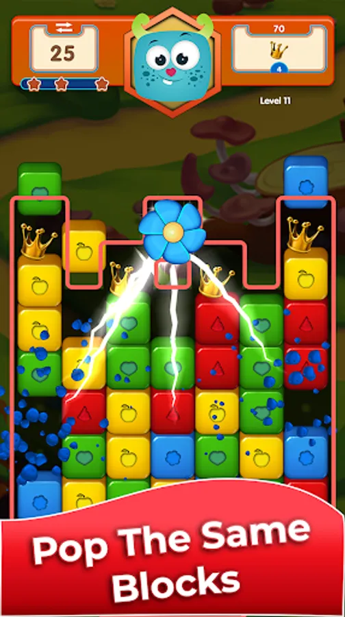 Tap to crush 2 or more adjacent cubes of the same color, 5 or more create a boost.