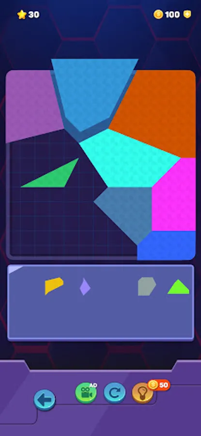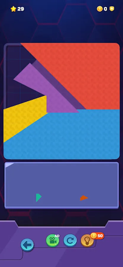 ◇ Hint Systems: Players can spend coins to use the highlight polygon block on the board.