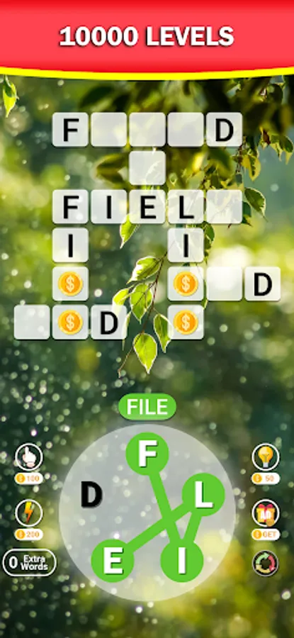 Playing this word puzzle game is easy! Simply swipe your finger over the letters in the letter wheel to form words. Find all the correct words to complete the level! Collect extra words to win bonus coins! This game comes will 1000 levels and 10 unique level themes so you will never feel bored!