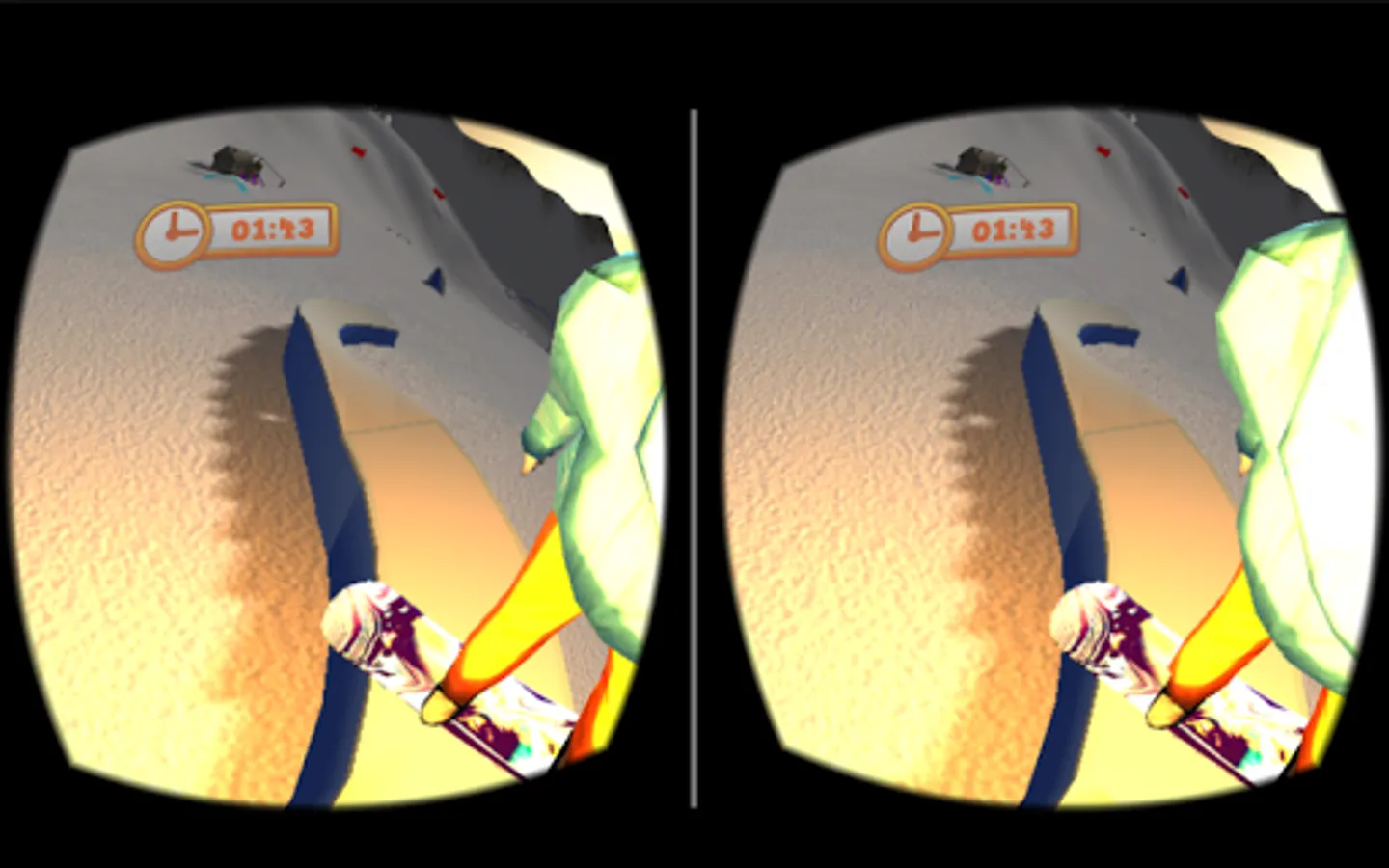 Mad Snowboarding VR a crazy open world virtual realllity snowboard game. Reach the finish and make as many tricks as possible on your way down the mountain. Choose your own individual course to the finish through the snowy mountain landscapes of the game by moving your head. Mad Snowboarding VR was designed to be used with Google Cardboard, but it can be also used with any other VR headset, for example Durovis Drive, Samsung Gear VR, I AM CARDBOARD, EasyLife, Carl Zeiss VR One, EVA VR Kit and more.