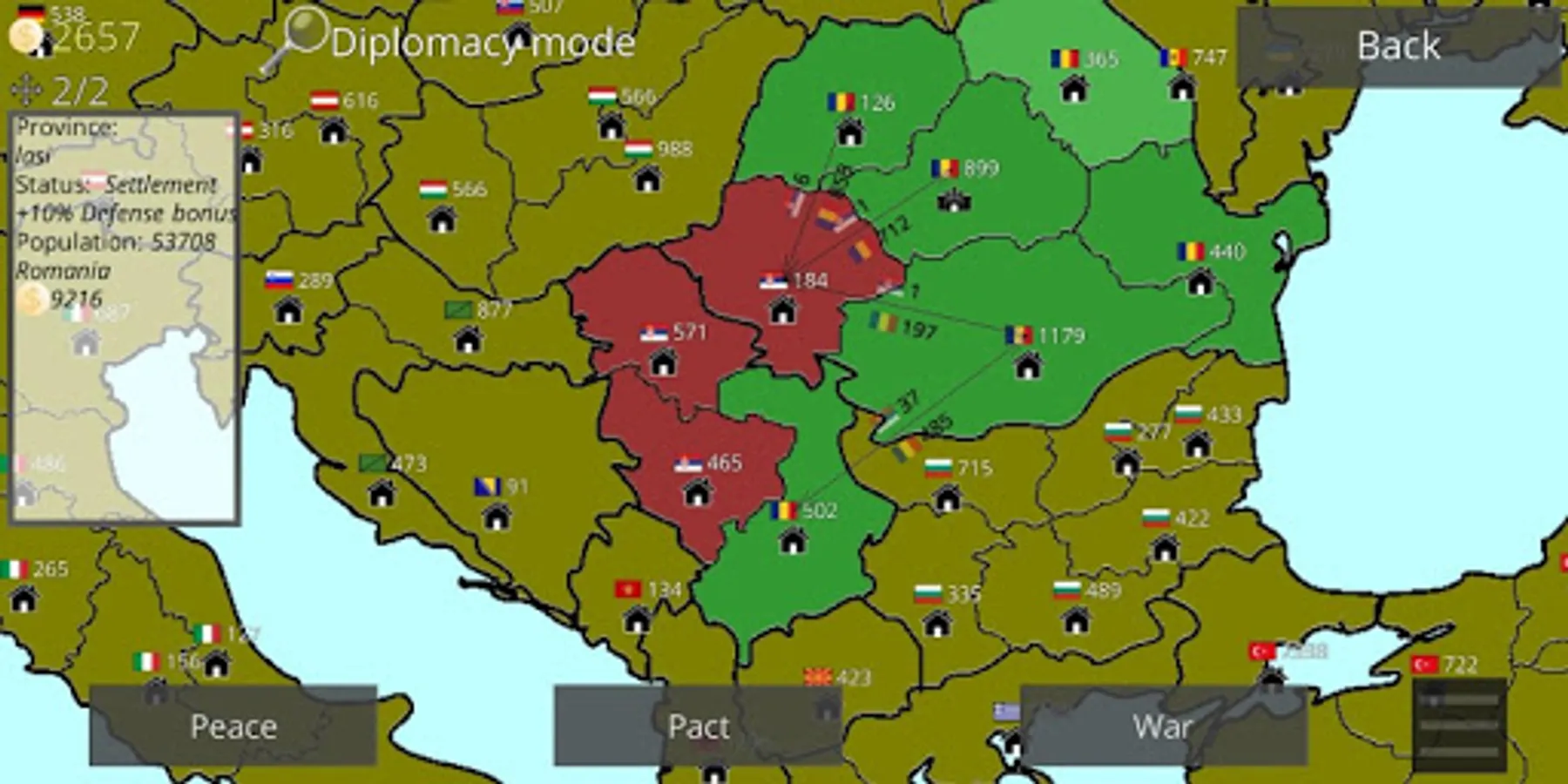Hire, move and dismiss armies. Declare war, make peace, sign non-aggression pacts, join alliances and leave them. Unleash a war with the wrong hands, pit enemies. Countries can present you with various ultimatums, unite against you. But you will be ready for this.