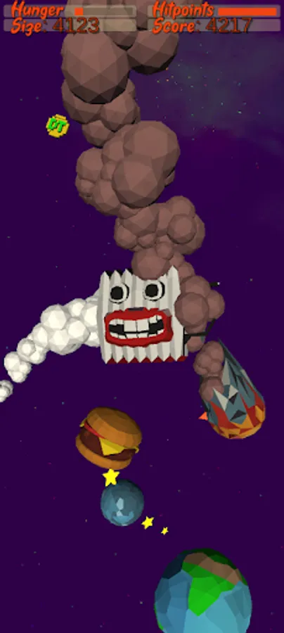 Eateor is a frantic game about a good ol chomp on cosmic rocks and getting really big . Eating a rock or a planet smaller than Eateor will make him grow big.