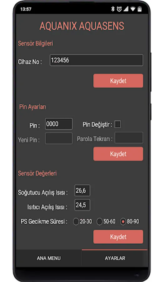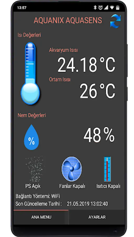 With this application you can control your Aquanix AquaSens device, which allows you to control the temperature of the aquarium and the ambient temperature remotely. You can adjust the temperature ranges of the heaters and coolers through the cloud, and you can adjust the opening delay times of the protein collectors.