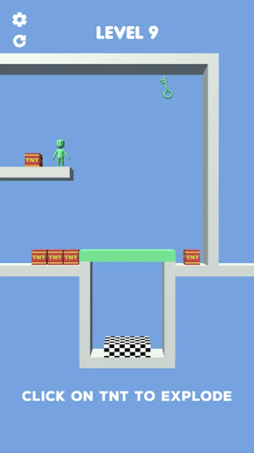 Tap on TNT cubes to make your player fly up and try reaching the finish line!