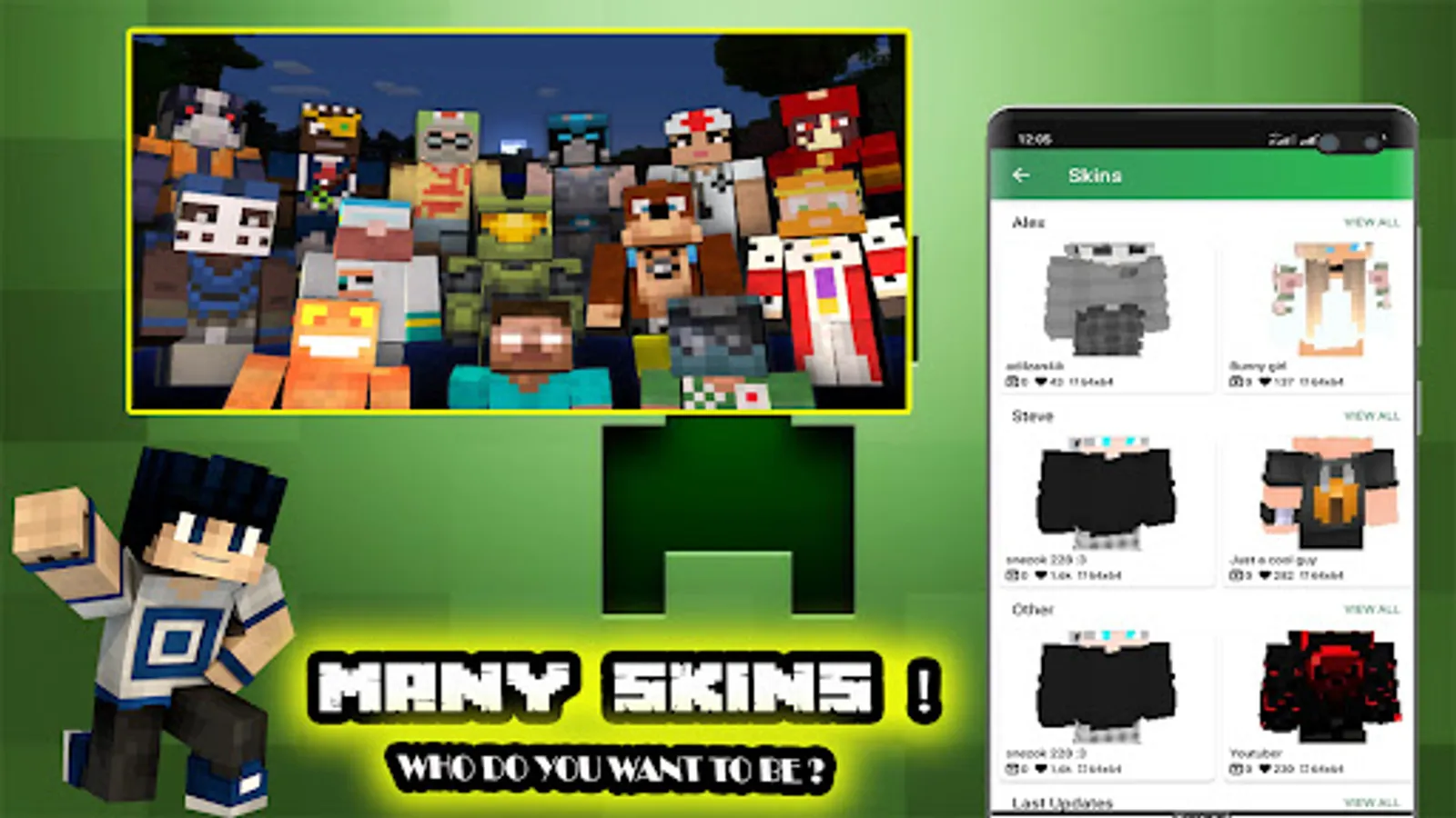 - More than 1000 well known and best Skins for Minecraft PE (Take Version) to your phone.