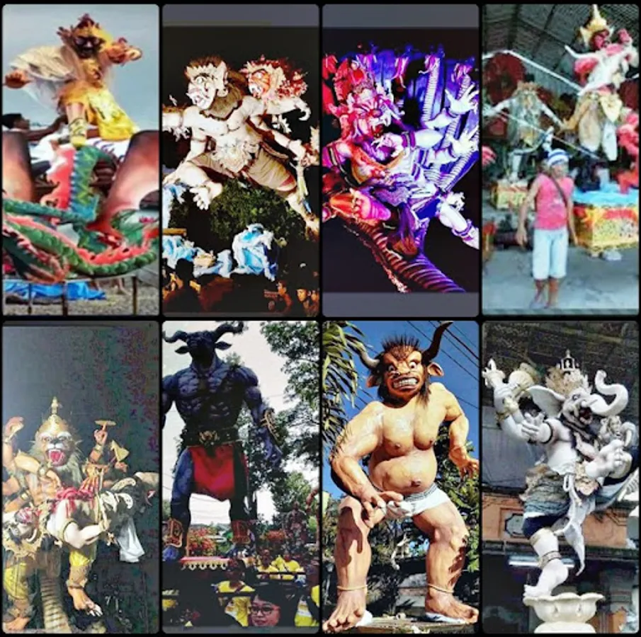 "Ogoh-ogoh are works of sculpture in the culture of Bali which describe the personality Bhuta Kala. In the teachings of Hindu Dharma, Bhuta Kala represents strength (Bhu) universe and time (Kala) that are measurable and irrefutable.