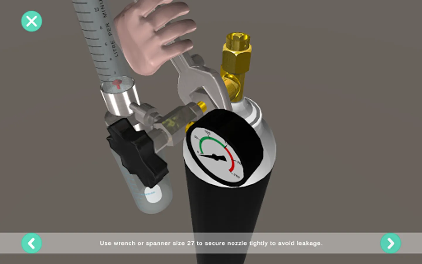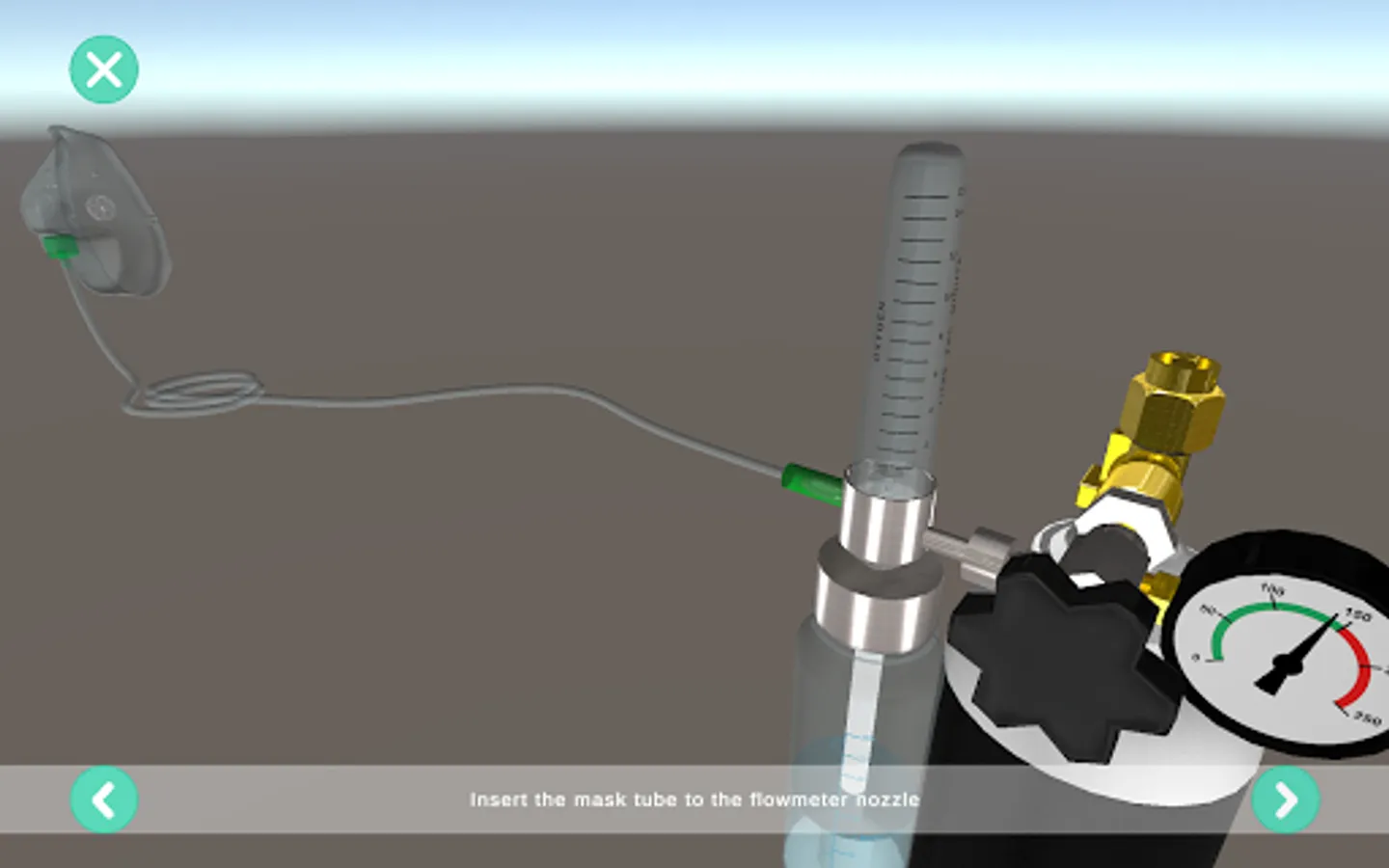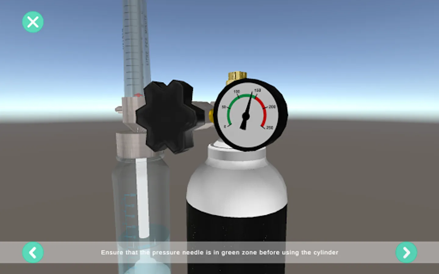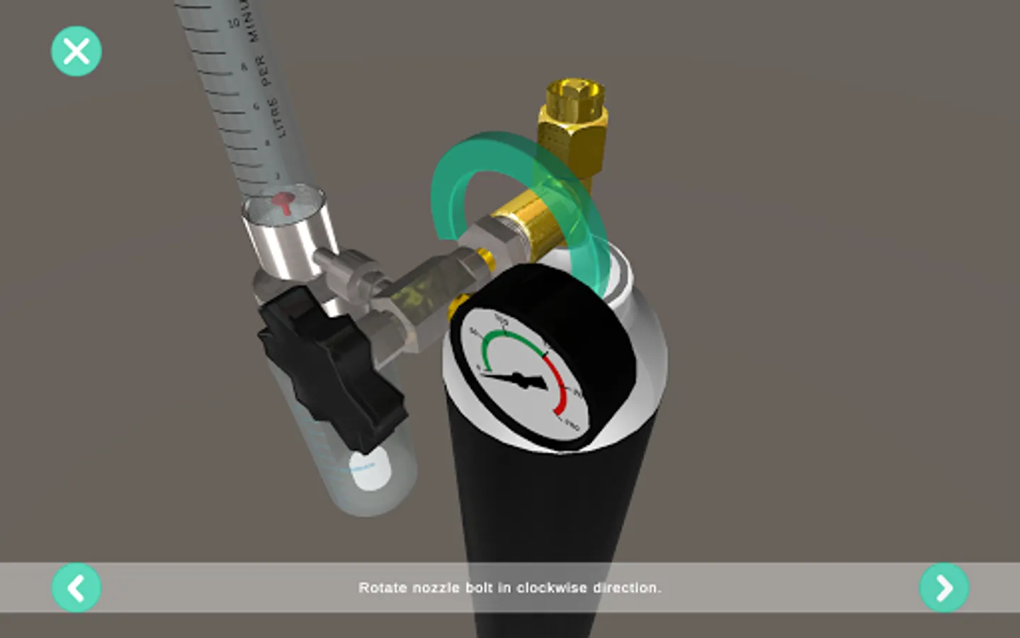 In today's time, when more and more people are in need of oxygen support at home, this app aims at providing a quick and easy, step by step instructions using augmented reality for anyone to be able to setup oxygen cylinder, connect the flowmeter and understand the basic do's and don'ts. The app is aimed only as an assisting tool for anyone trying to understand how to setup oxygen support in emergency. It is strongly recommended that oxygen cylinder setup at home and administering oxygen must be done only with proper medical prescription and advise/ supervision