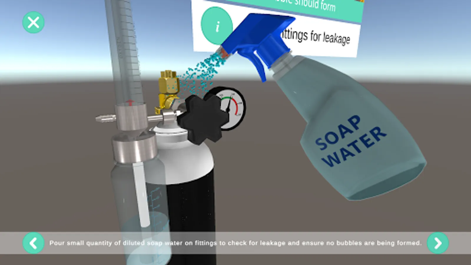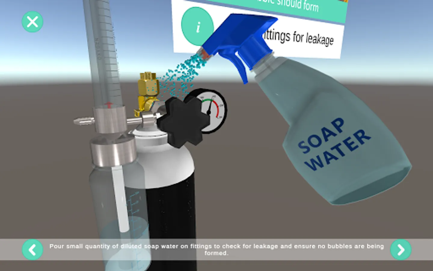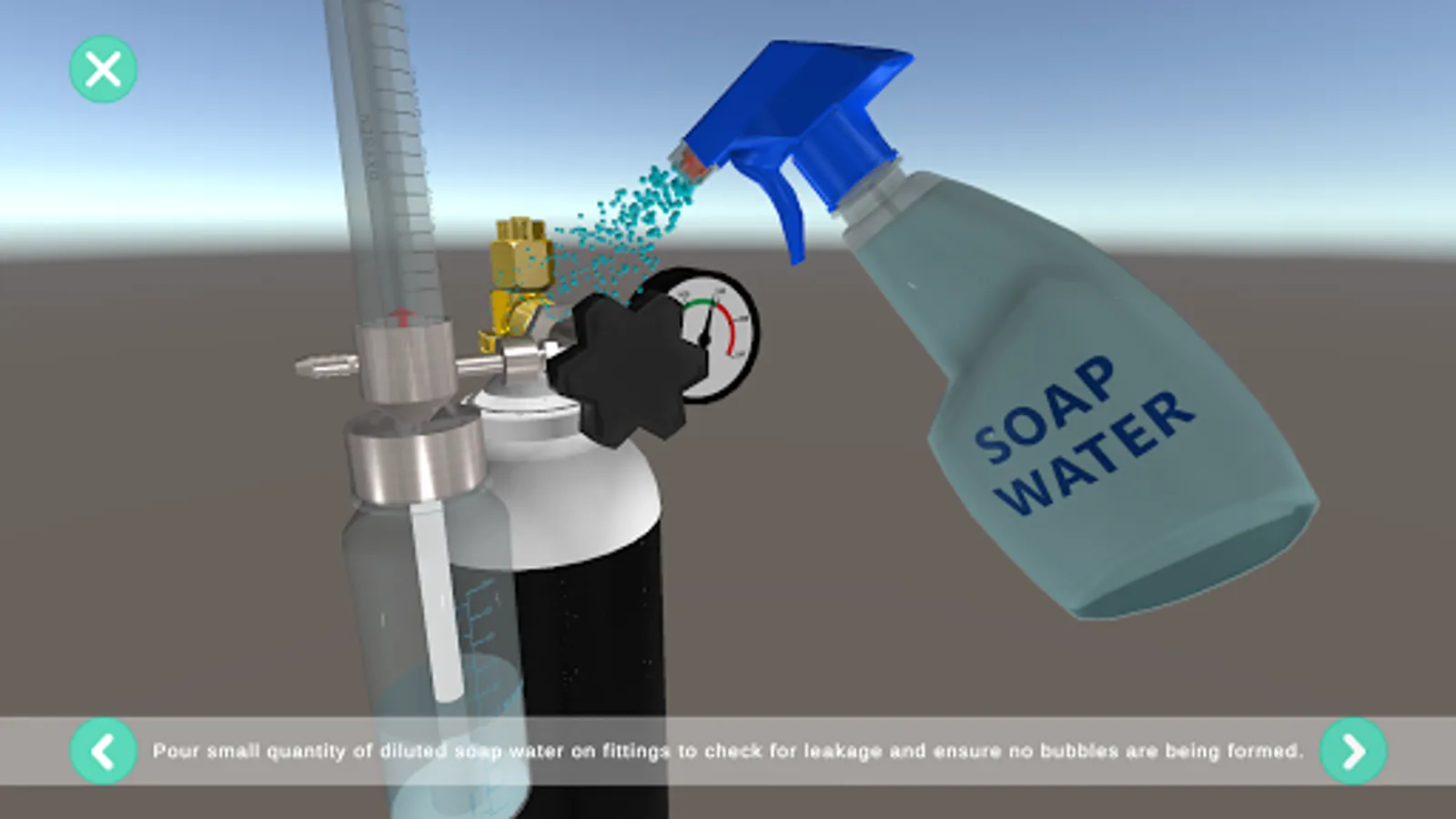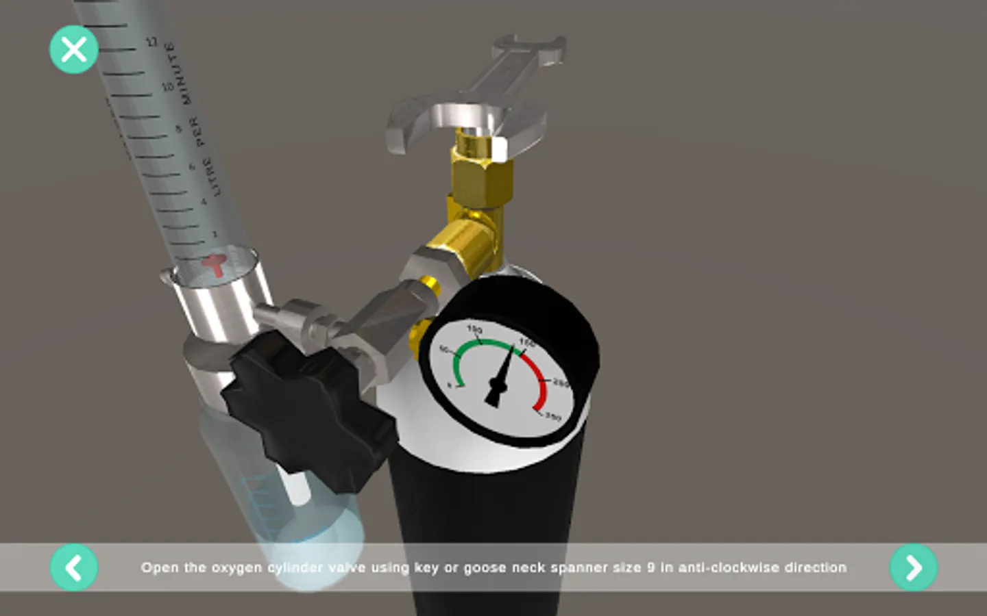 In today's time, when more and more people are in need of oxygen support at home, this app aims at providing a quick and easy, step by step instructions using augmented reality for anyone to be able to setup oxygen cylinder, connect the flowmeter and understand the basic do's and don'ts. The app is aimed only as an assisting tool for anyone trying to understand how to setup oxygen support in emergency. It is strongly recommended that oxygen cylinder setup at home and administering oxygen must be done only with proper medical prescription and advise/ supervision