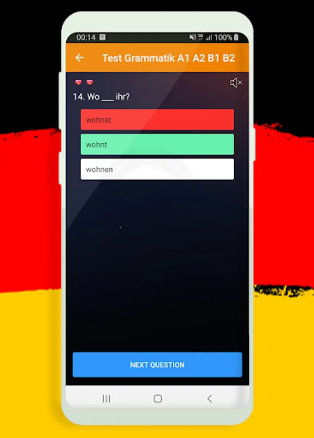 Free application for the topic Test German Grammar A1 A2 B1 B2. Download free exercises now!