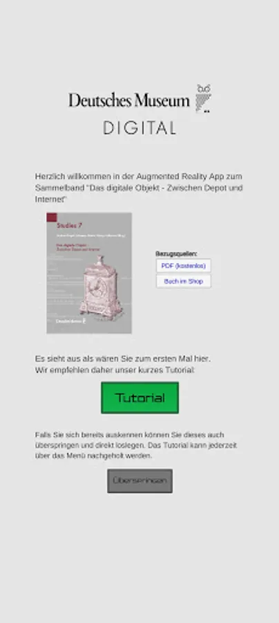 The digital object 2018 is an augmented reality application accompanying the anthology “The digital object - Between Depot and Internet” by the Deutsches Museum from the “Deutsches Museum Studies” series. The anthology can be downloaded free of charge from the Deutsches Museum website or directly from the app. The printed book is available from the Deutsches Museum shop.