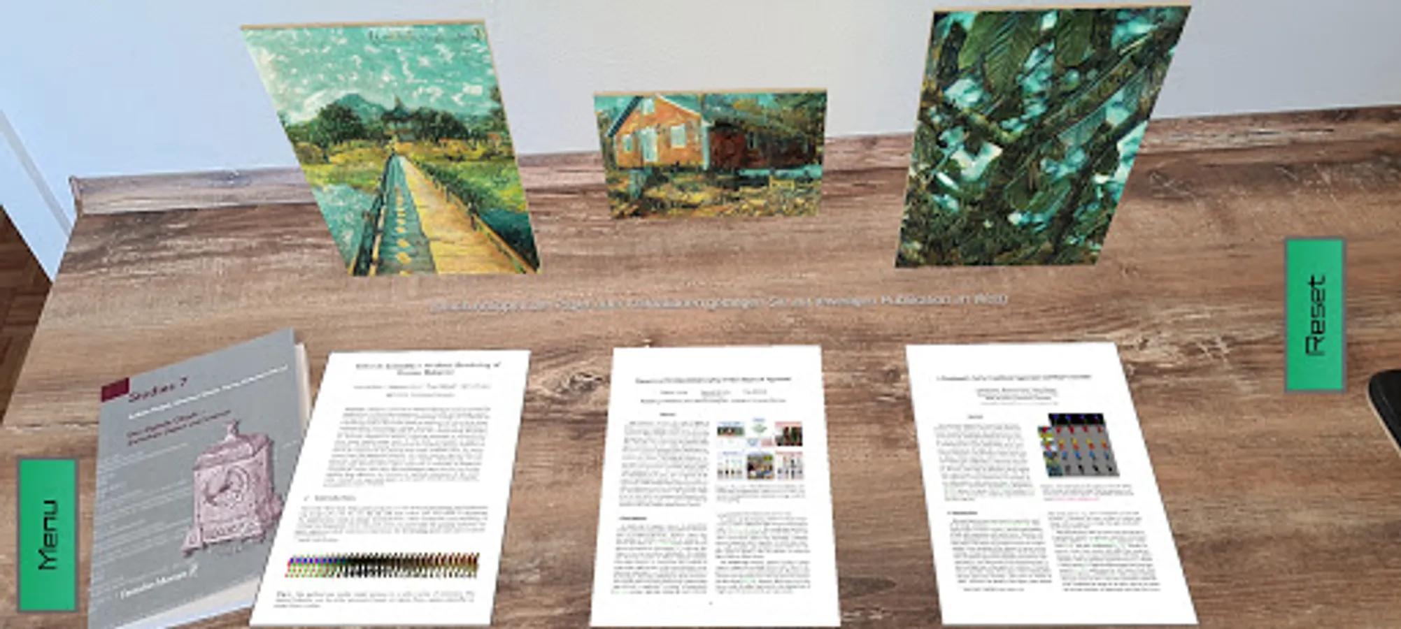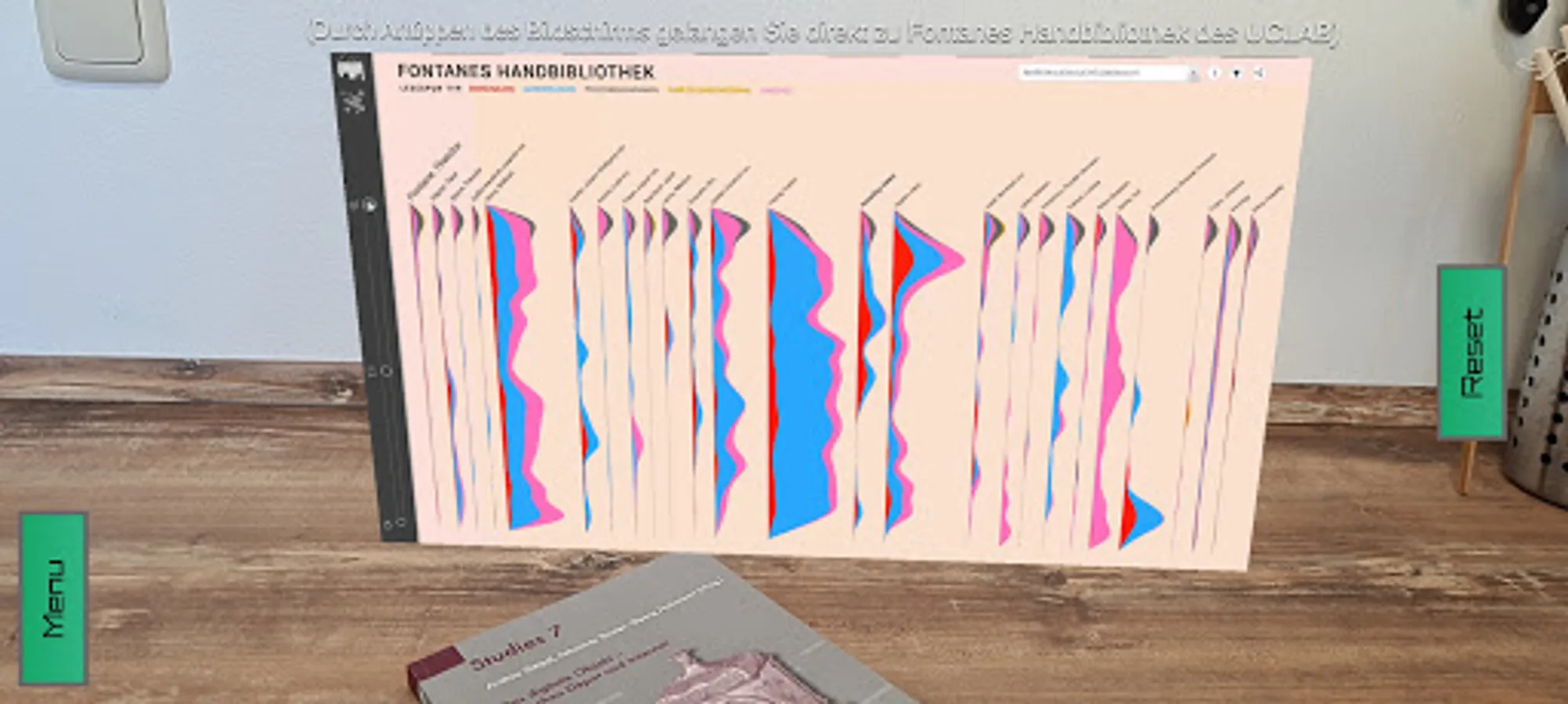 With the help of augmented reality technology, the application offers various additional content to put the content of the anthology in context. Among other things, 3D models, videos, animations and other texts can be viewed. Here, a wide variety of approaches to digital expansion were deliberately chosen, with the aim of stimulating discussion and discussion about the medium of augmented reality.