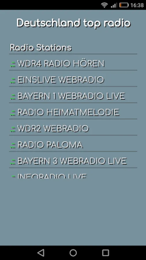 Find German top radio stations in our simple radio app, very easy to use. Our German radio application will entertain you 24 hours a day, listen to music, news and sports. Keep in mind when you choose to stream a radio station, you have to wait for the link to load a few seconds before the radio starts playing, sometimes the radio station may be offline. Our radio application is very easy to use.