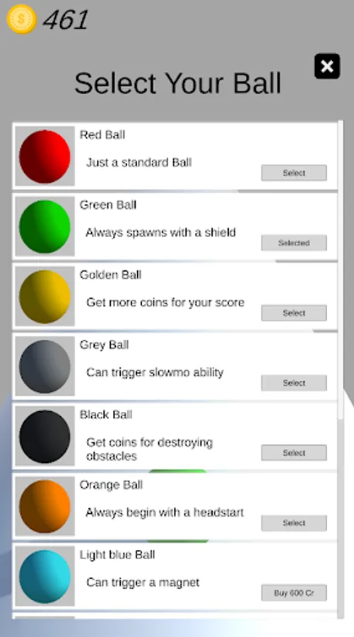Get even further by choosing different balls with their unique abilities like starting of with a headstart or getting more coins for your score.