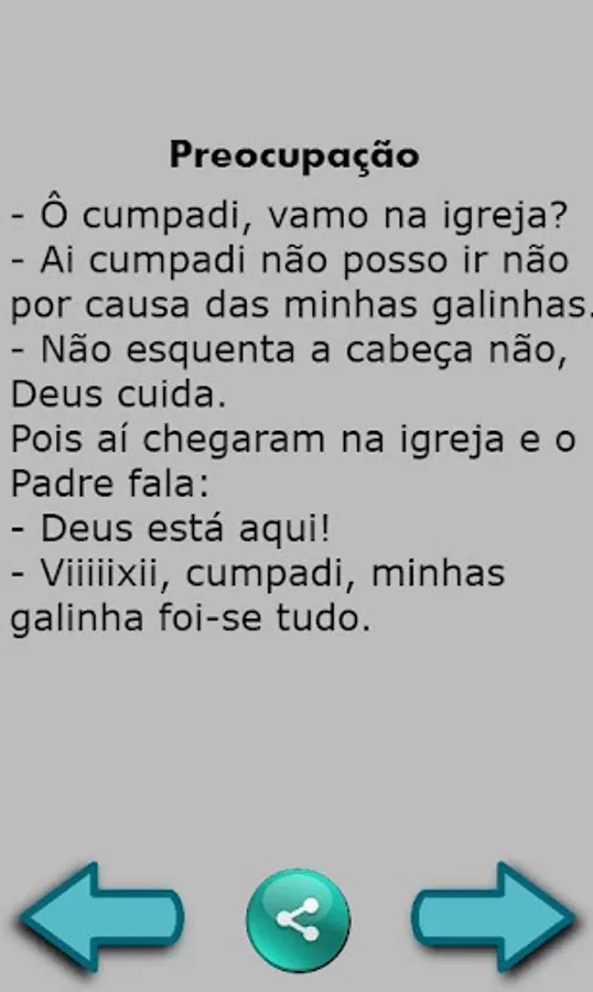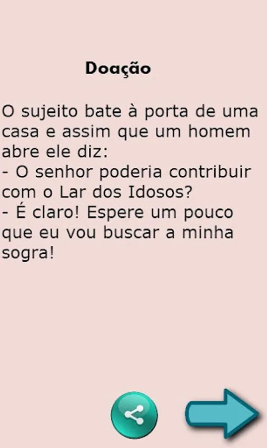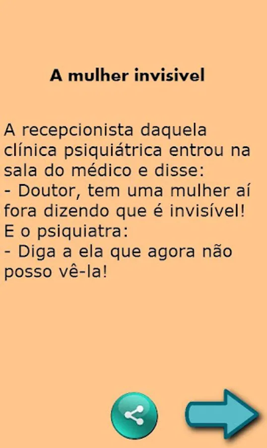 There are several categories like jokes: crazy, cuckold, old, doctor, lawyer, hillbilly, blond, friendship, animals, gay, drunk, political, dwarves, mother, Portuguese and more with the new updates and all joke messages available to share.