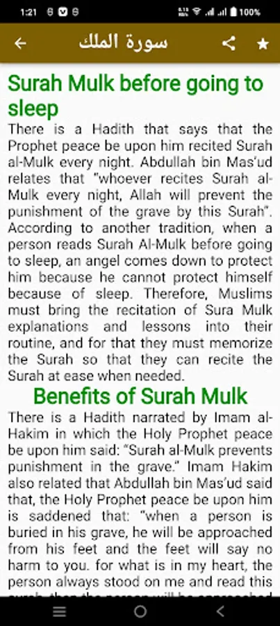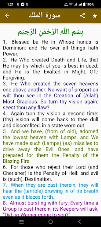 Surah Al-Mulk (Chapter 67 of the Quran) is a Meccan surah and is comprised of 30 verses. The surah's main theme is the power and sovereignty of Allah (God) and the ultimate defeat of disbelief and idolatry.