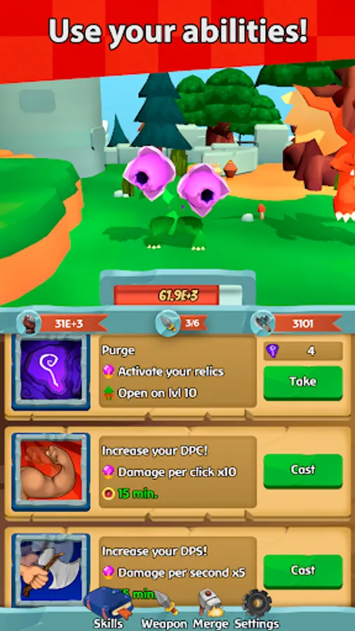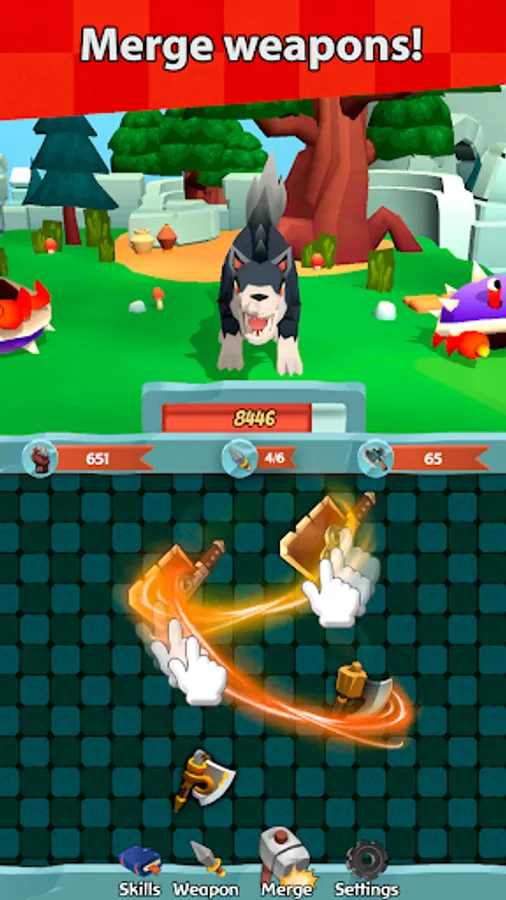 Merge and craft a vast array of weapons, from mighty swords to devastating axes, using the unique and intricate merging system. Combine similar weapons to unlock more powerful and legendary ones. Master the art of weapon fusion to create the ultimate arsenal to defend your kingdom.