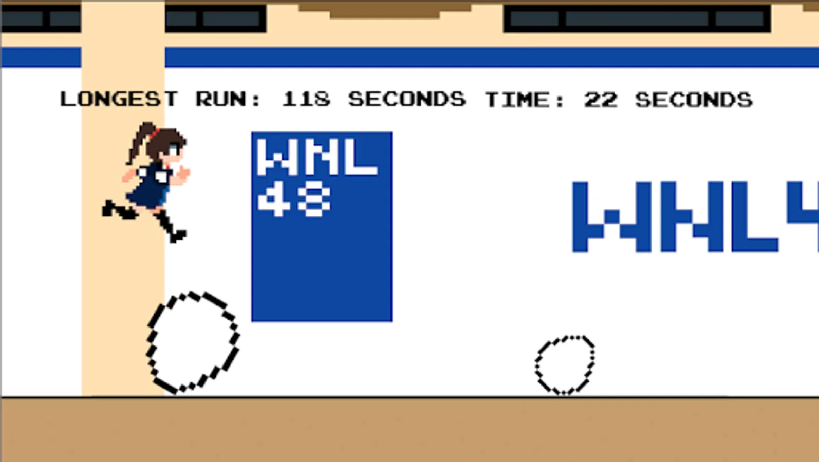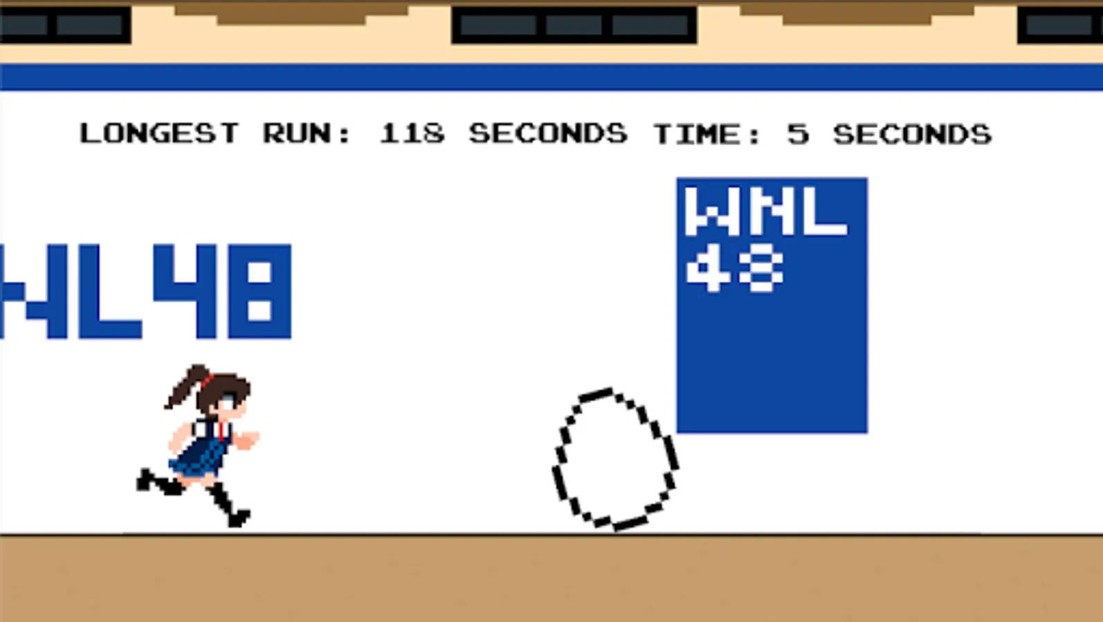 Egg Jumps is a casual game where you jump over eggs around WNL48 Theater. You play as WNL48 Sela, and all you have to do is jump over the eggs. Or else, she'll become one.