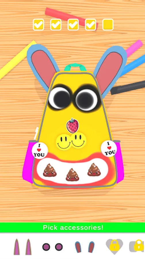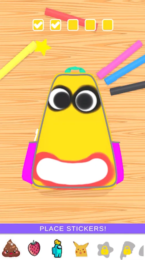 Use cleaning sponge, painting cans, stickers, badges and ears to customize your perfect backpack!